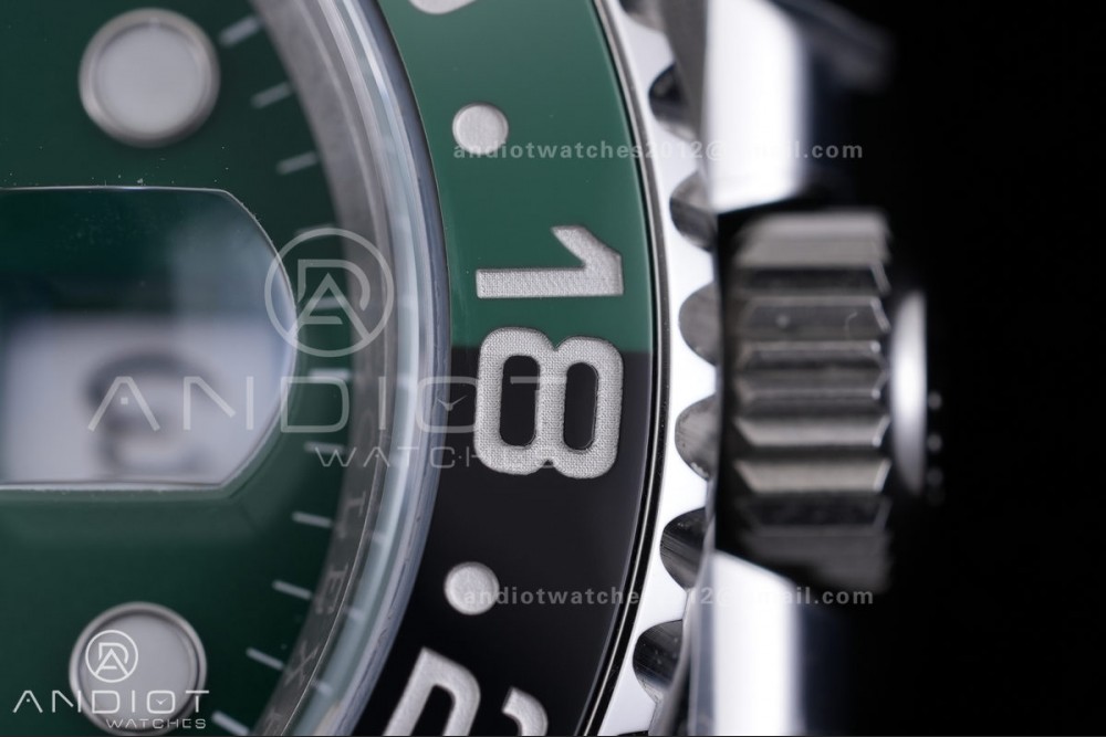 - Bezel : Bi-directional rotating Black/Green ceramic bezel(V3 version bezel)