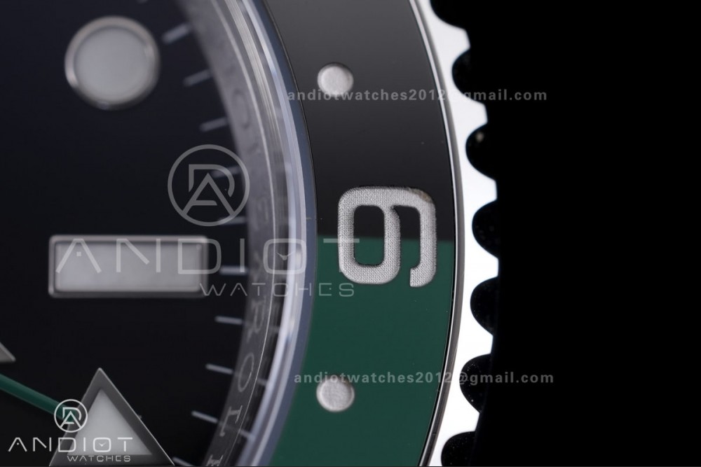 - Bezel : Bi-directional rotating Black/Green ceramic bezel(V3 version bezel)