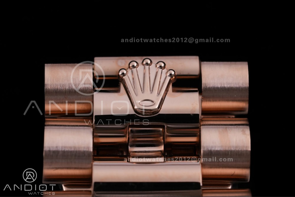 - Strap : 18k rose gold plated solid 904L stainless steel president bracelet