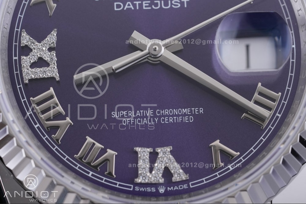DateJust 36 SS 126234 ARF 1:1 Best Edition Purple Diamonds Roman Dial on Oyster Bracelet DD3235