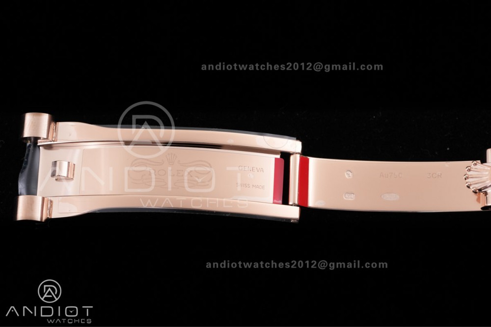 - Strap : 18k rose gold plated solid 904L stainless steel bracelet, Cu-W metal to increase watch weight