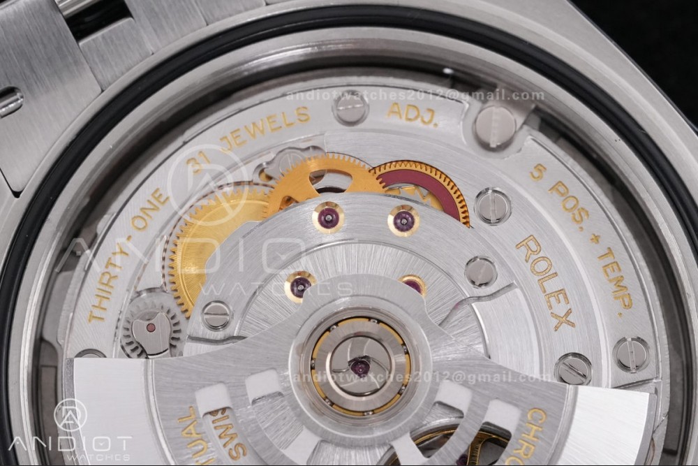 - Case : 1:1 high quality 904L stainless steel, screw-in back and crown, deep and double line engraved rehaut, brighter and more accurate engravings, random serial number engraved at 6:00 of the rehaut. Different random serials