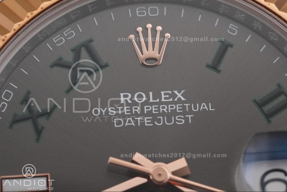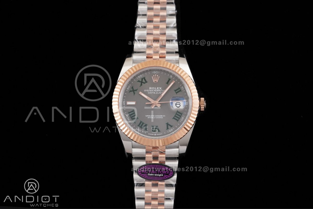 DateJust 41 126331 SS/RG RCF 1:1 Best Edition 904L Steel Gray Dial Green Roman on SS/RG Jubilee Bracelet RC3235