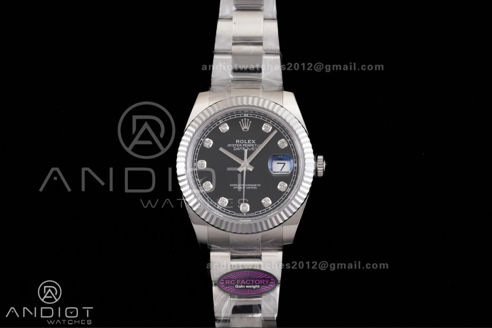 DateJust 41 126334 RCF 1:1 Best Edition 904L Steel Black Diamonds Dial on Oyster Bracelet RC3235