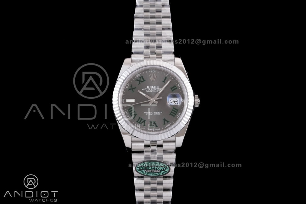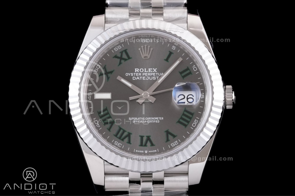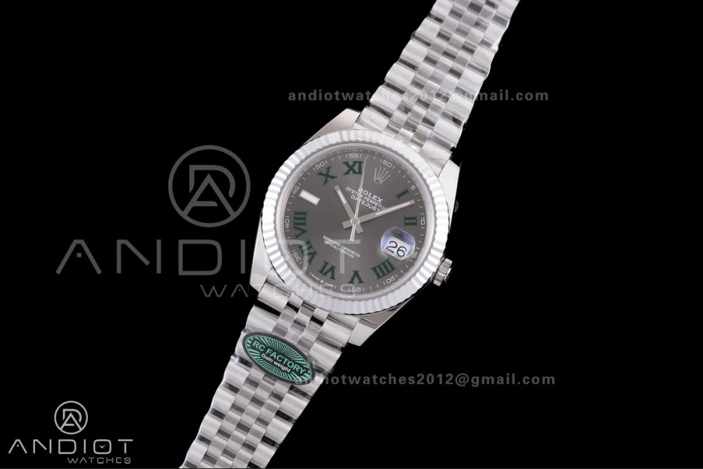 DateJust 41 126334 RCF 1:1 Best Edition 904L Steel Gray Dial Green Roman on Jubilee Bracelet RC3235