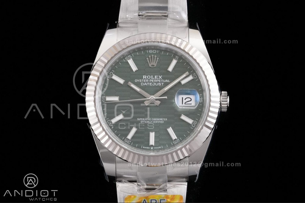 DateJust 41 126334 ARF 1:1 Best Edition 904L Steel Green Textured Stick Dial on Oyster Bracelet DD3235