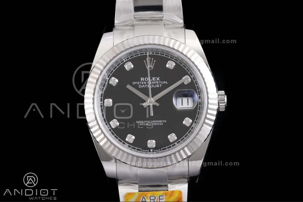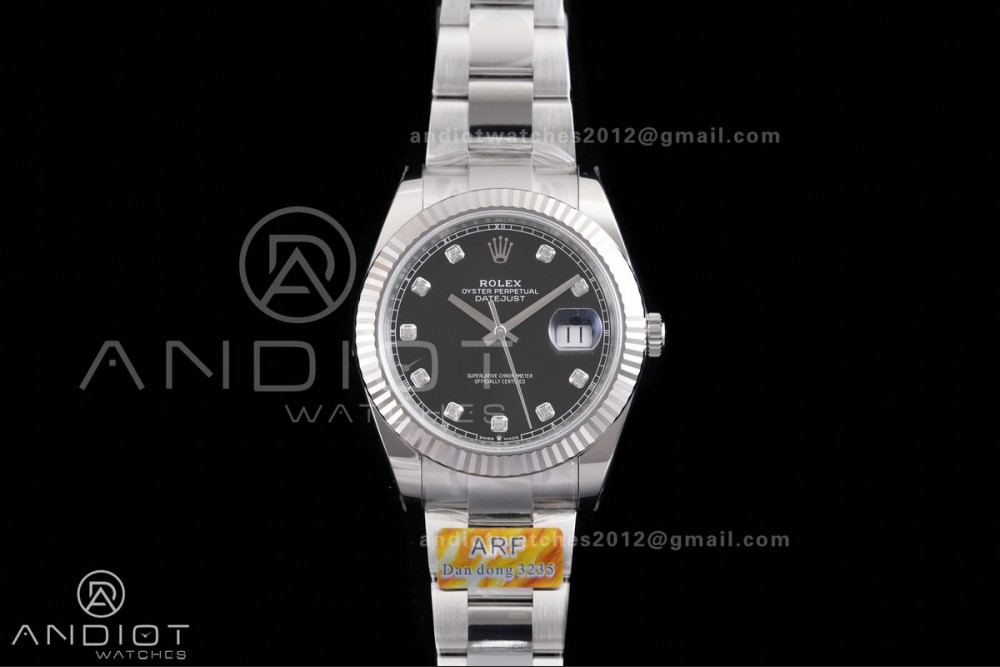 DateJust 41 126334 ARF 1:1 Best Edition 904L Steel Black Diamonds Dial on Oyster Bracelet DD3235