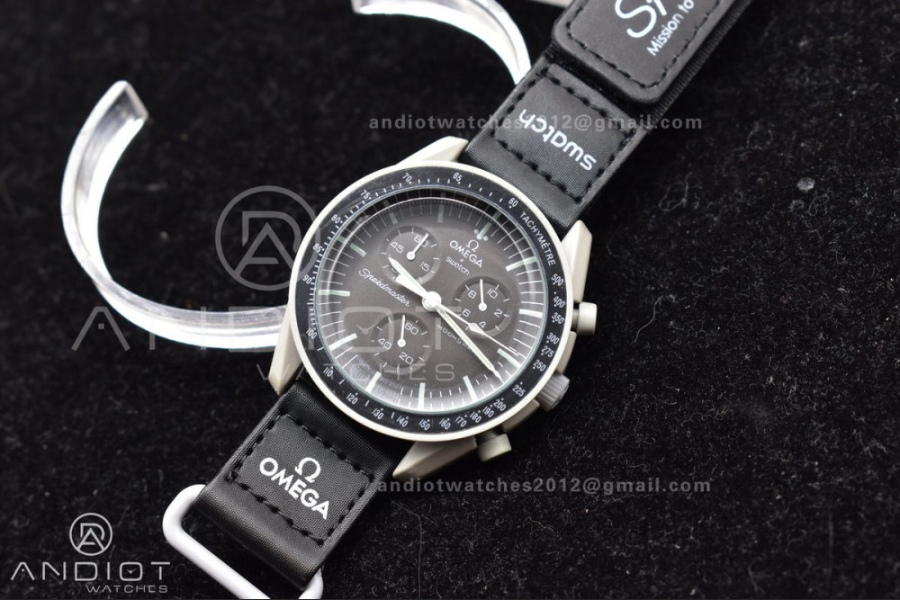 Swatch x Omega Bioceramic Moonwatch Mission to The Moon on Nylon Strap Quartz