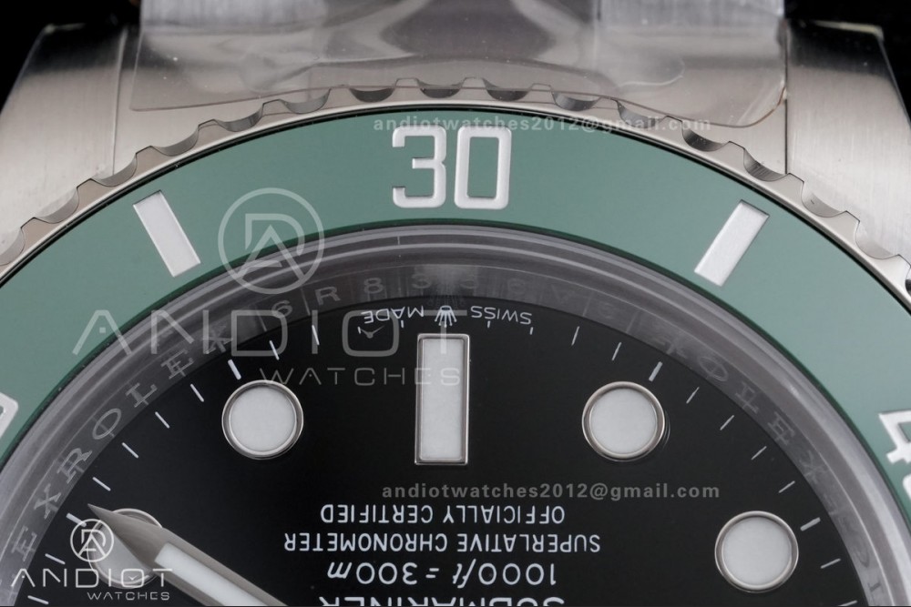 - Bezel : Uni-directional rotating green ceramic bezel, very close to genuine green color