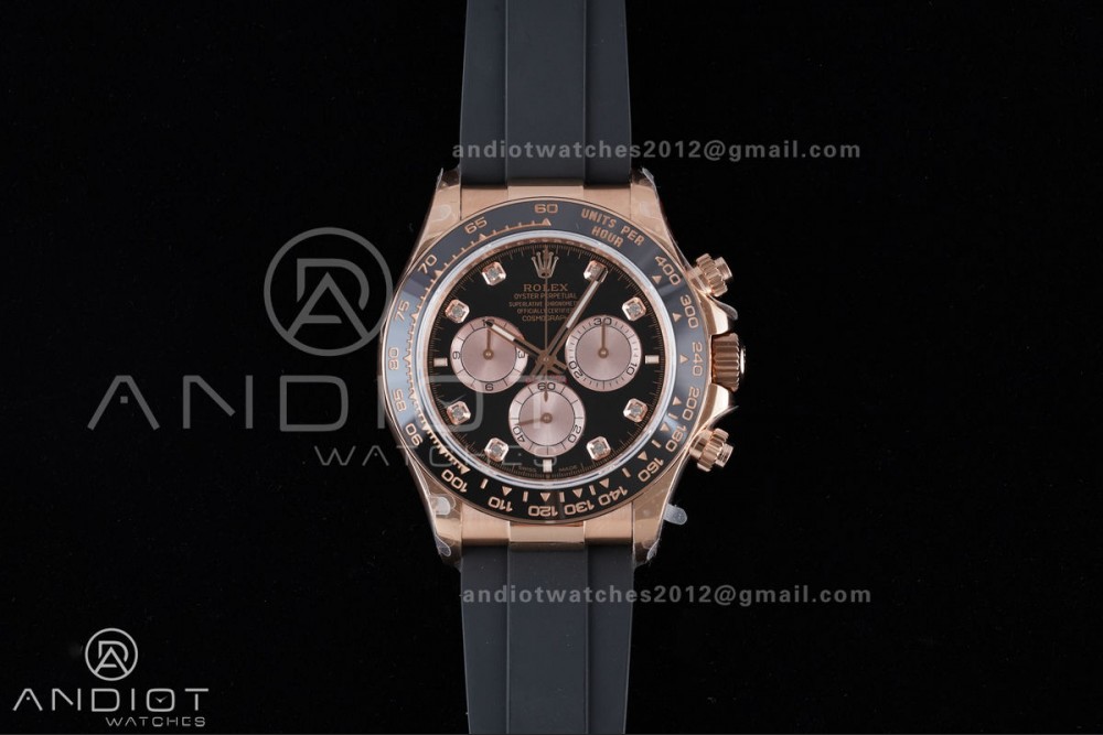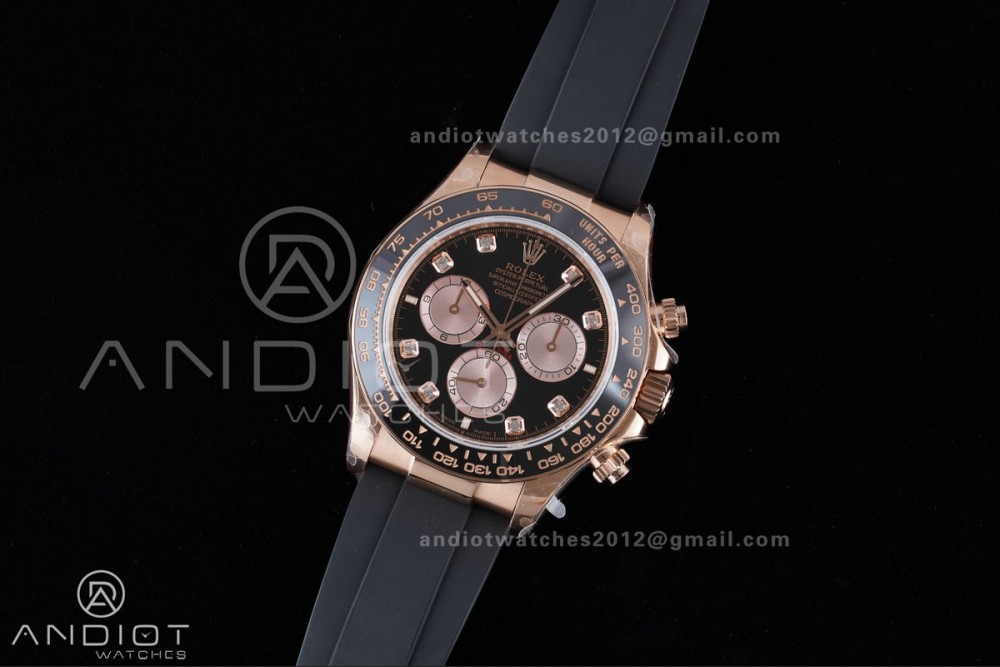 Daytona 126515 QF 1:1 Best Edition Black/RG Diamonds Dial on Oysterflex Strap QF4131 V10 (Gain Weight)