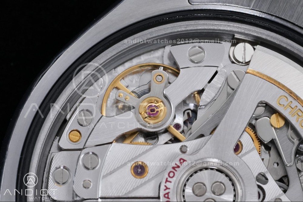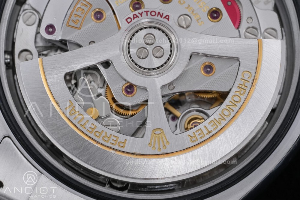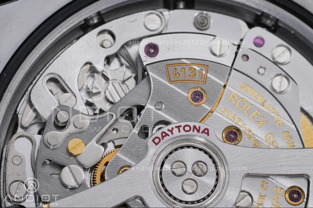 - Movement : Super Asia Clone QF4131 Slim Chronograph Automatic with Fully Functional Chronograph and decorated Rotor & Bridges/Plates to look like Rolex Genuine Calibre 4131 for Daytona Chronograph (Super Clone 4131 with Full Functional