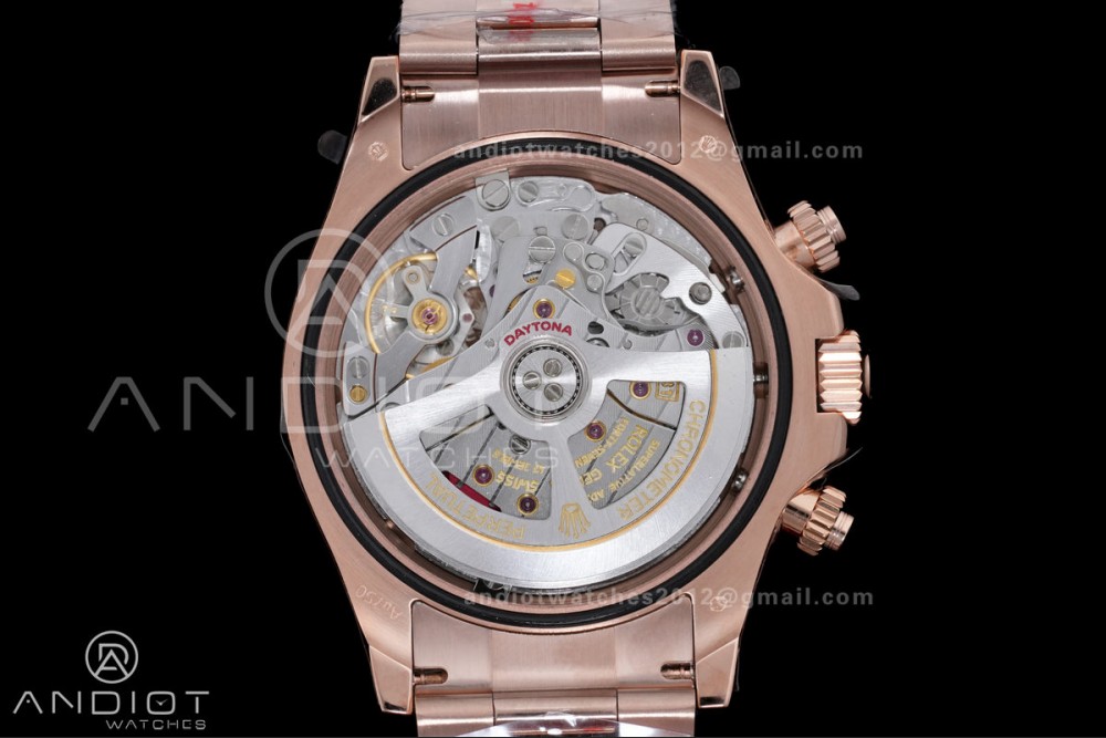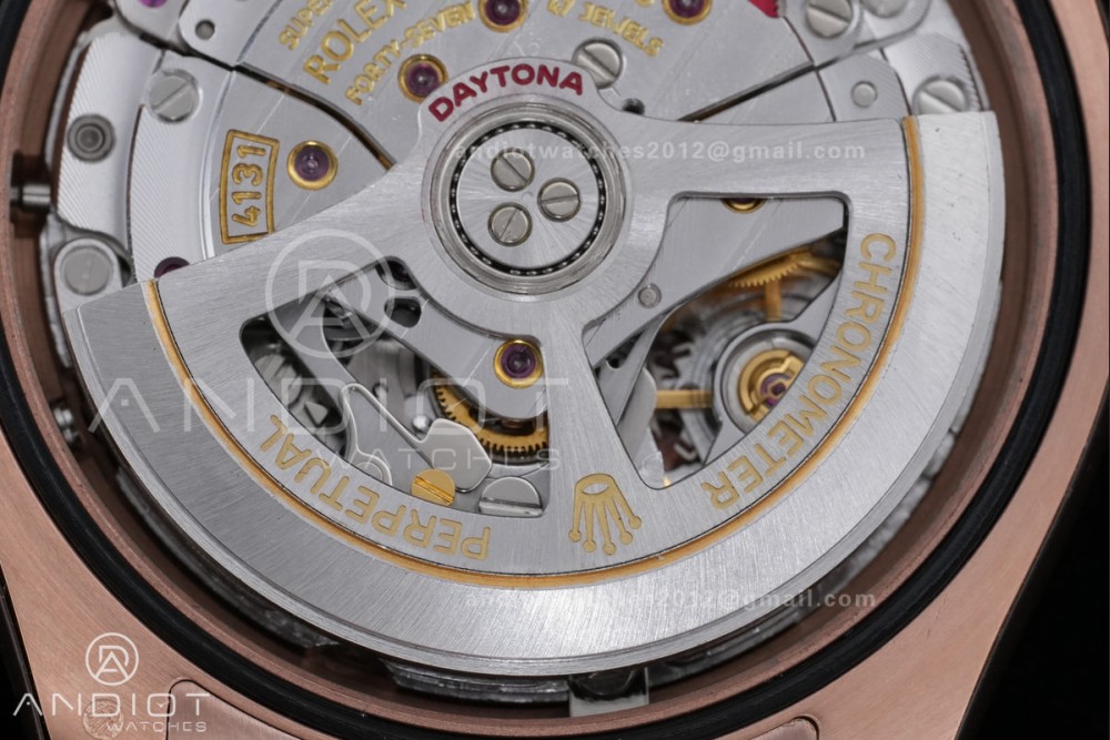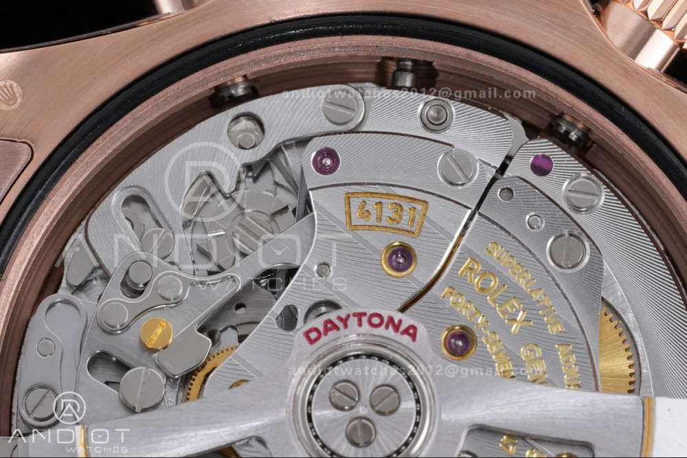 - Movement : Super Asia Clone QF4131 Slim Chronograph Automatic with Fully Functional Chronograph and decorated Rotor & Bridges/Plates to look like Rolex Genuine Calibre 4131 for Daytona Chronograph (Super Clone 4131 with Full Functional