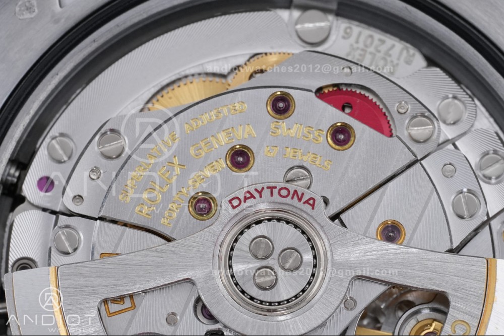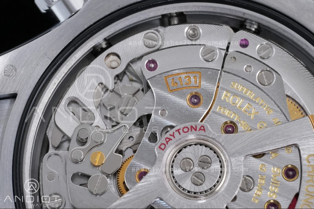 - Movement : Super Asia Clone QF4131 Slim Chronograph Automatic with Fully Functional Chronograph and decorated Rotor & Bridges/Plates to look like Rolex Genuine Calibre 4131 for Daytona Chronograph (Super Clone 4131 with Full Functional