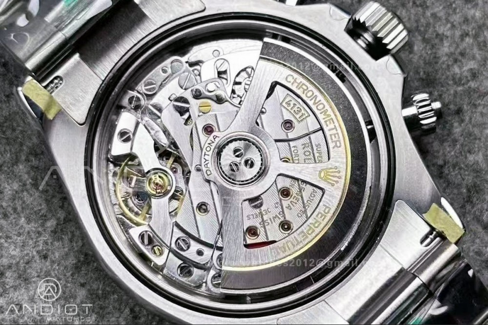 • Movement : Free Sprung Balance Wheel Superclone UFO.F4131 Slim Chronograph Automatic with Fully Functional Chronograph and decorated Rotor & Bridges/Plates like Rolex Genuine Calibre 4131 for Daytona Chronograph (Super Clone 4131 with Full Functional Chronograph