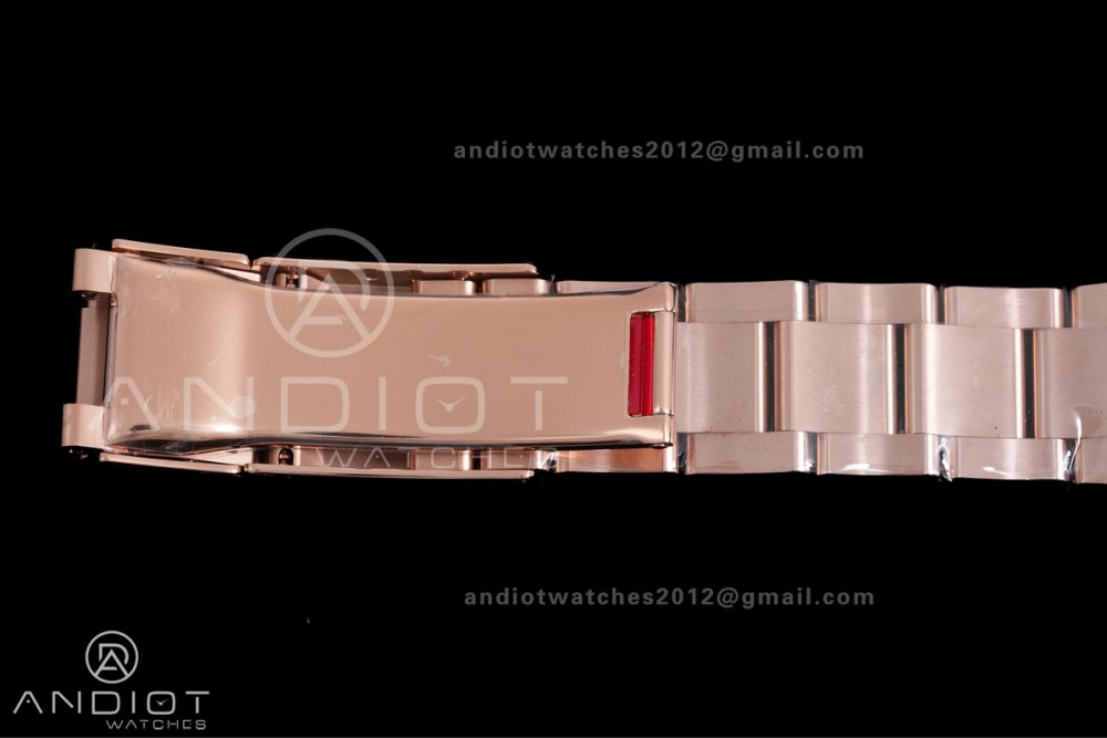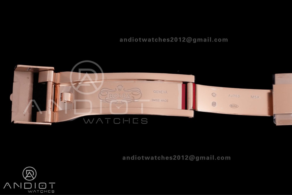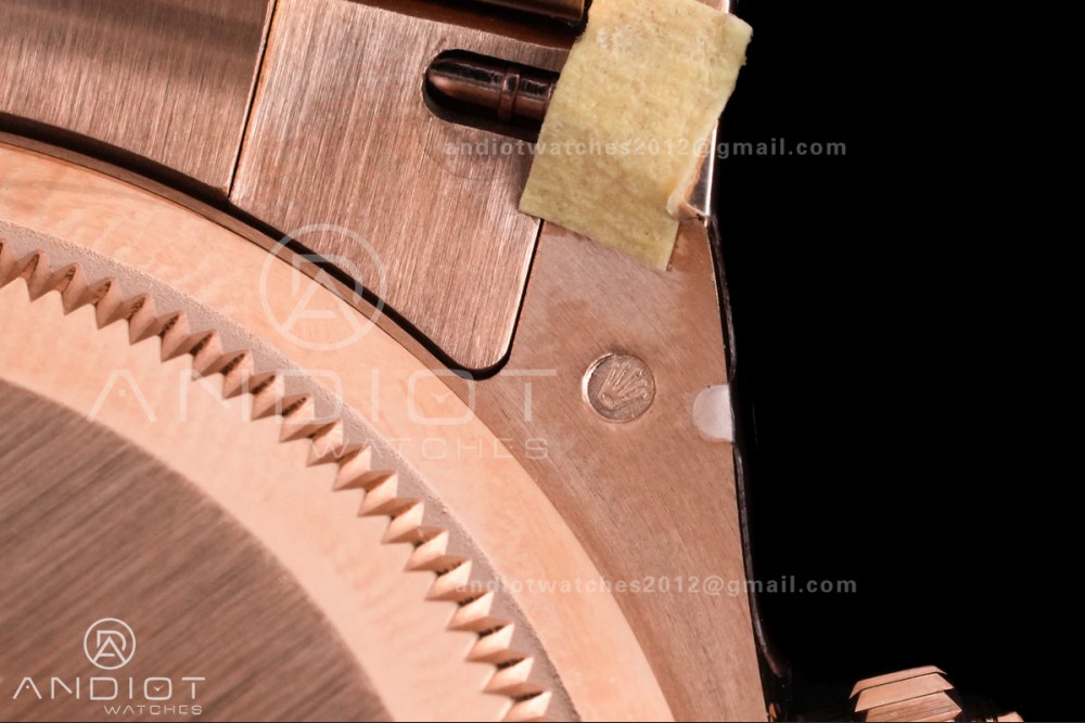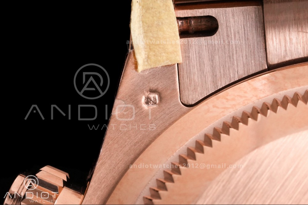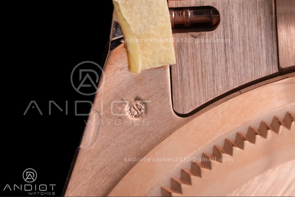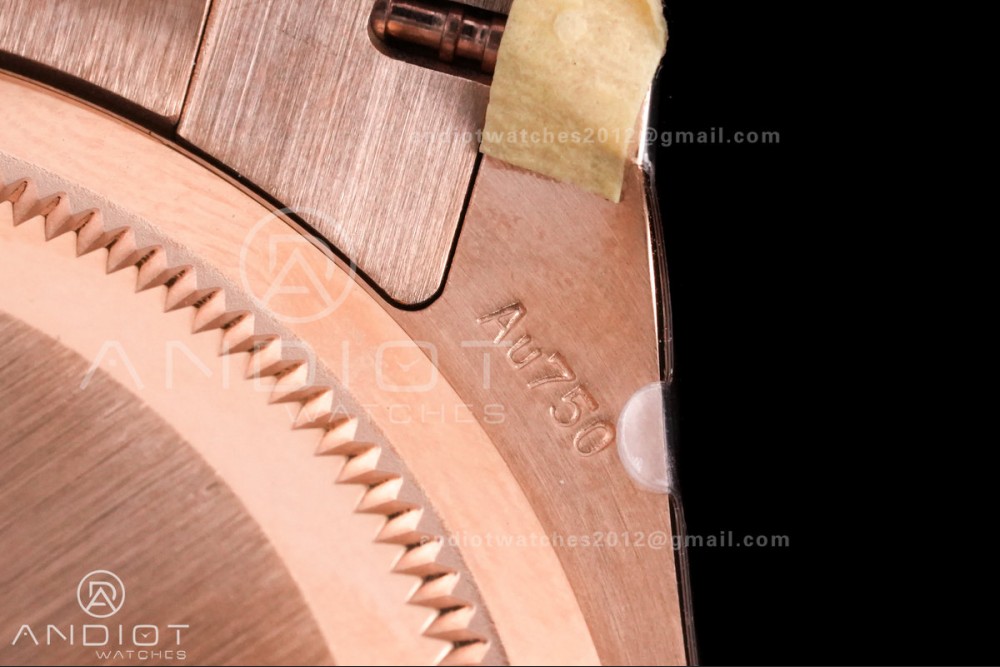 - Case : 18k rose gold plated 1:1 replicated solid 904L stainless steel case, Cu-W metal to increase watch weight, the whole watch head is about 98.5g, almost the same as genuine watch head weight 98.8g