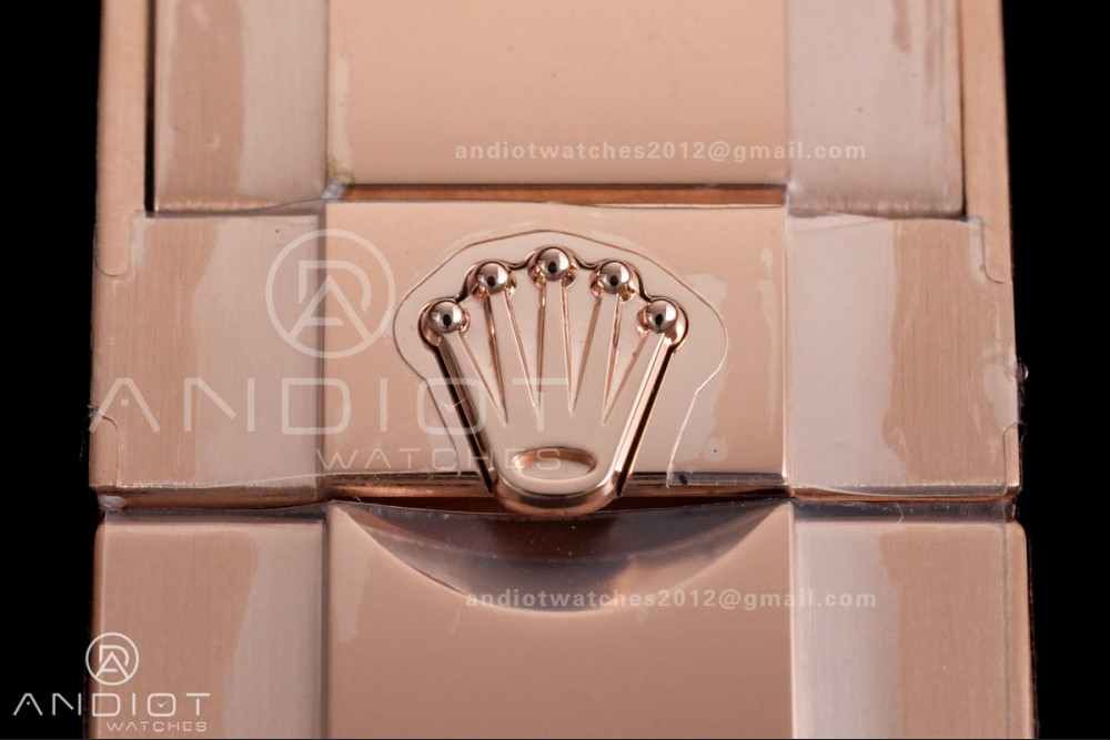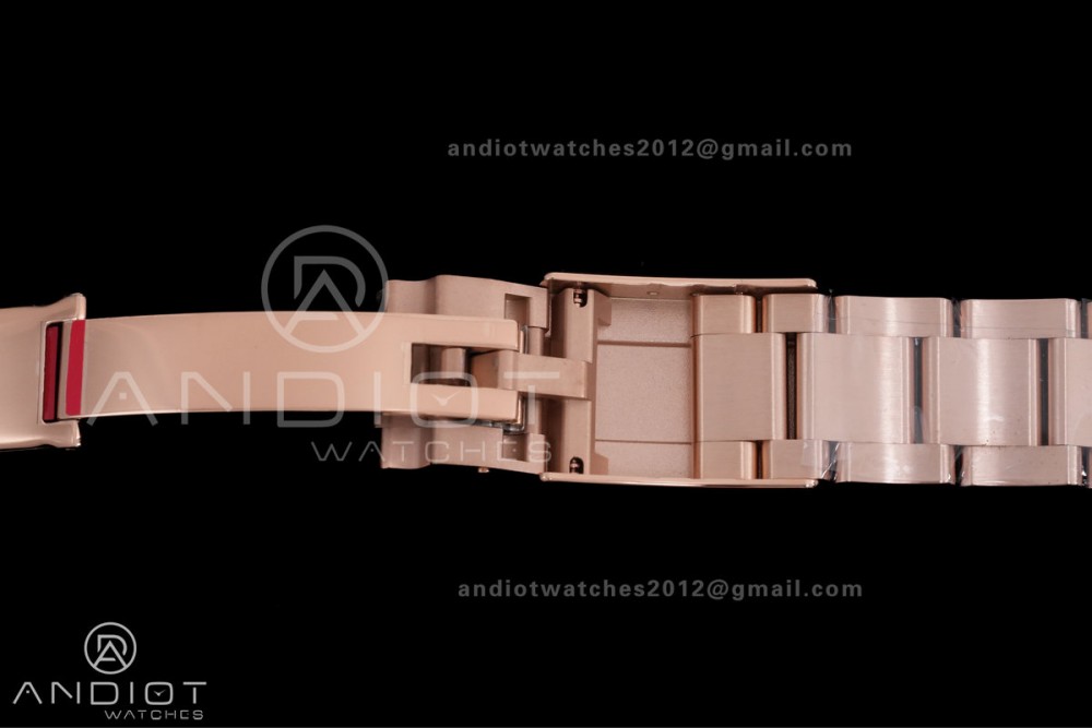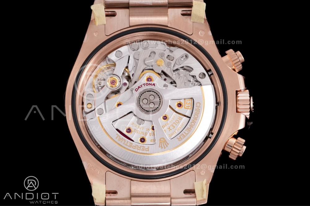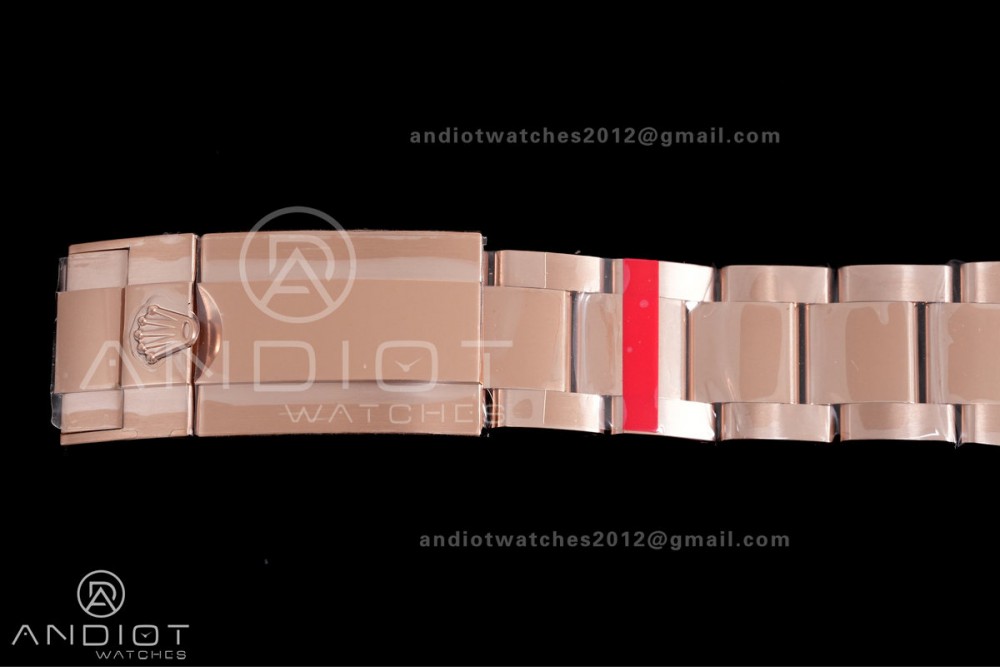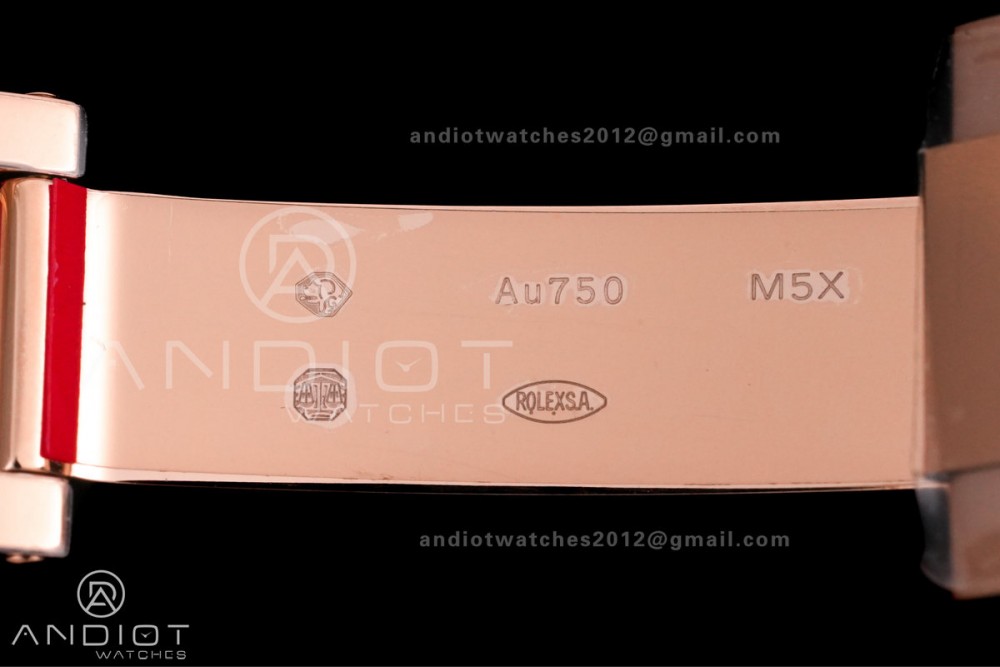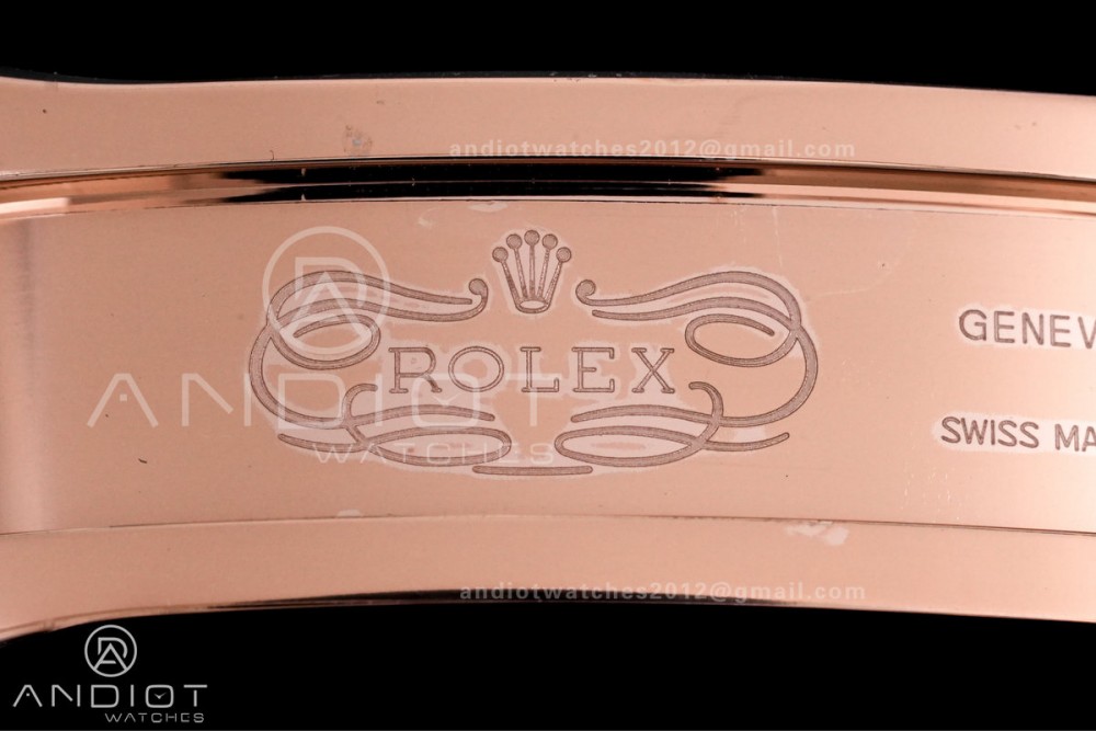 - Case : 18k rose gold plated 1:1 replicated solid 904L stainless steel case, Cu-W metal to increase watch weight, the whole watch head is about 98.5g, almost the same as genuine watch head weight 98.8g
