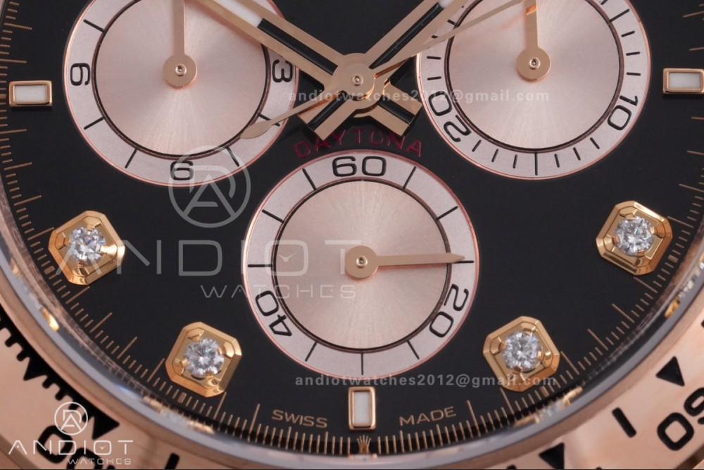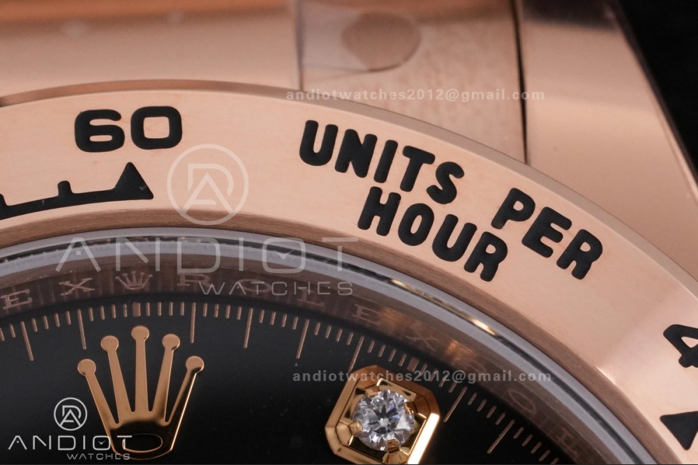 Daytona 126505 VSF 1:1 Best Edition 904L Steel Black/RG Diamond Dial on RG Braclet VS4131 V3 (Weighted)