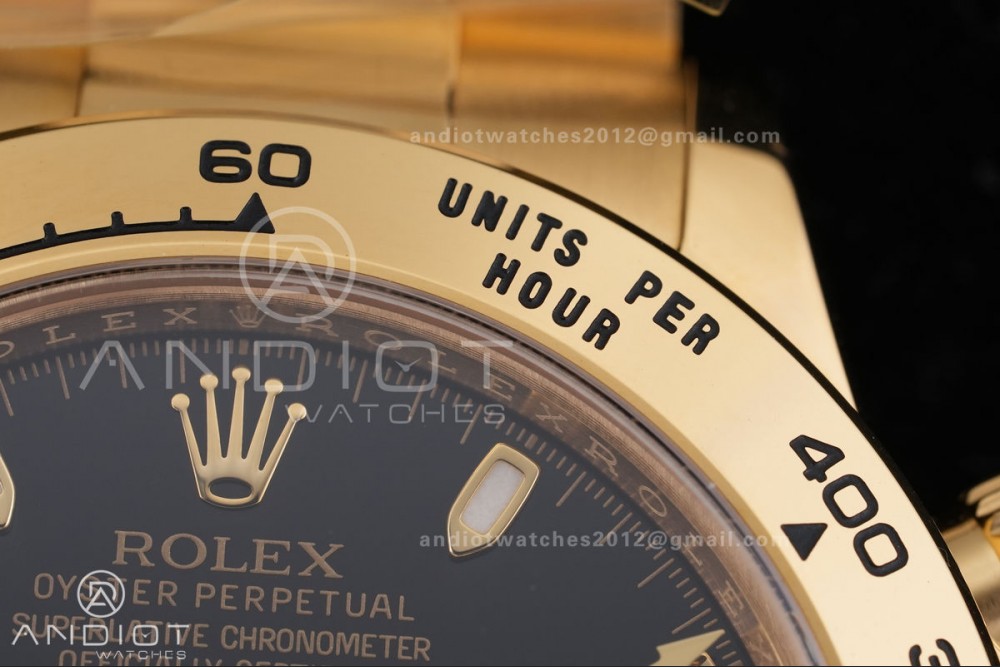 - Case : 18k yellow gold plated 1:1 replicated solid 904L stainless steel case