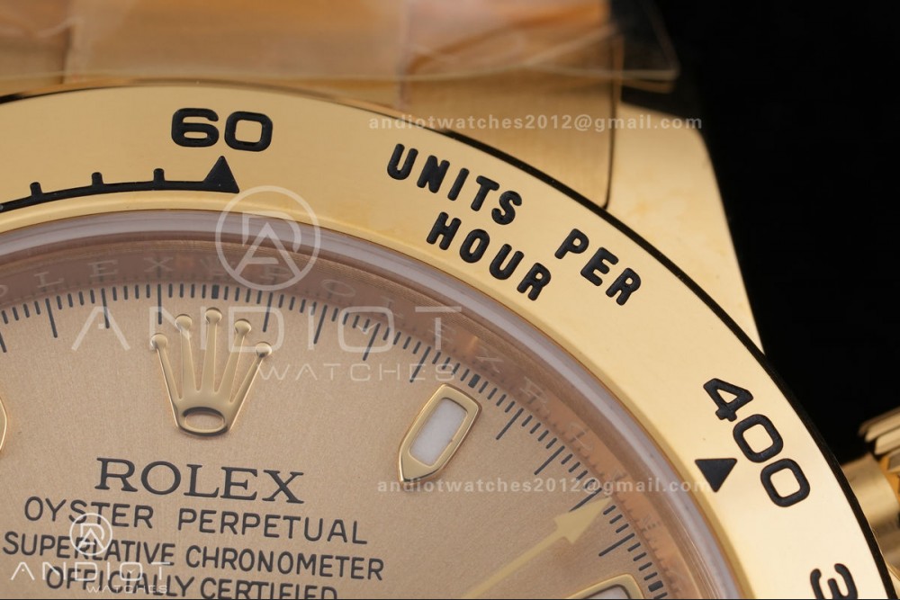 • Case : 18k yellow gold plated 1:1 replicated solid 904L stainless steel case