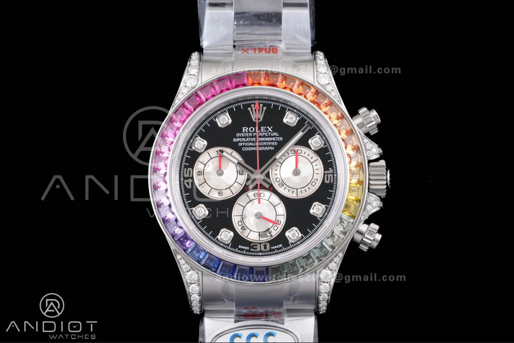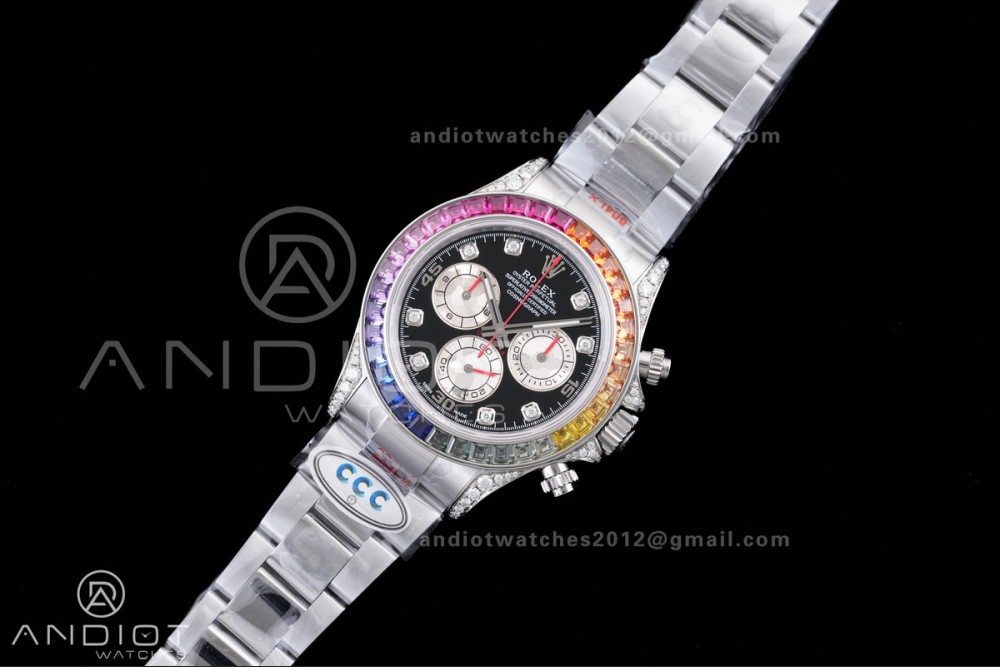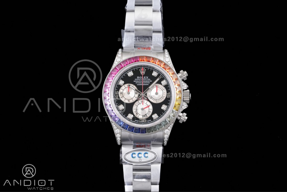 Daytona 116599rbow 3CF 1:1 Best Edition Black Diamonds Dial on SS Bracelet DD4130 V2 (Mod Version)