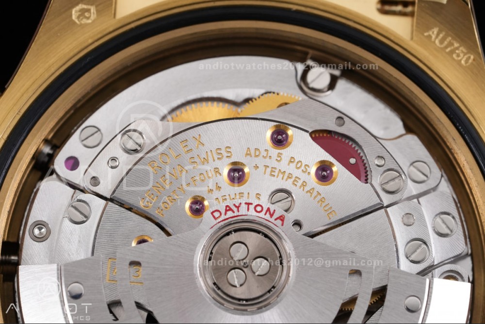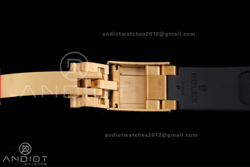 - Bezel : Black ceramic tachymeter bezel, real gold plated correct markers, same shape and depth as genuine bezel