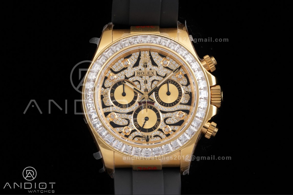 Daytona 116588TBR 'Eye Of The Tiger' YG 3CF 1:1 Best Edition Tiger Diamonds Dial on Oysterflex Strap DD4130 V2 (Mod Version)