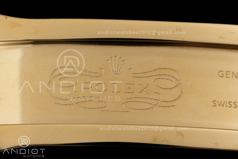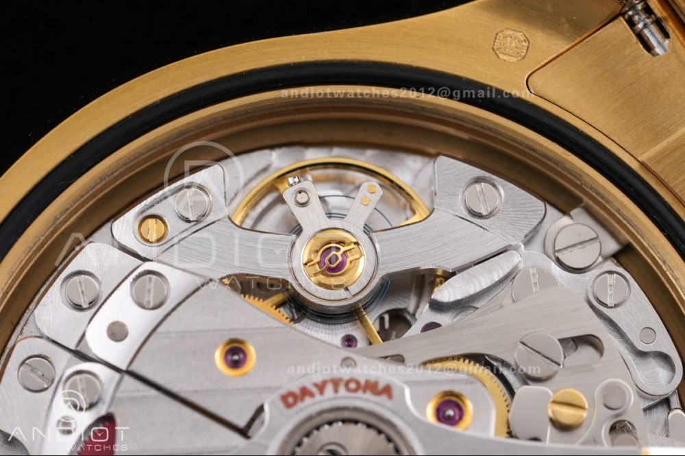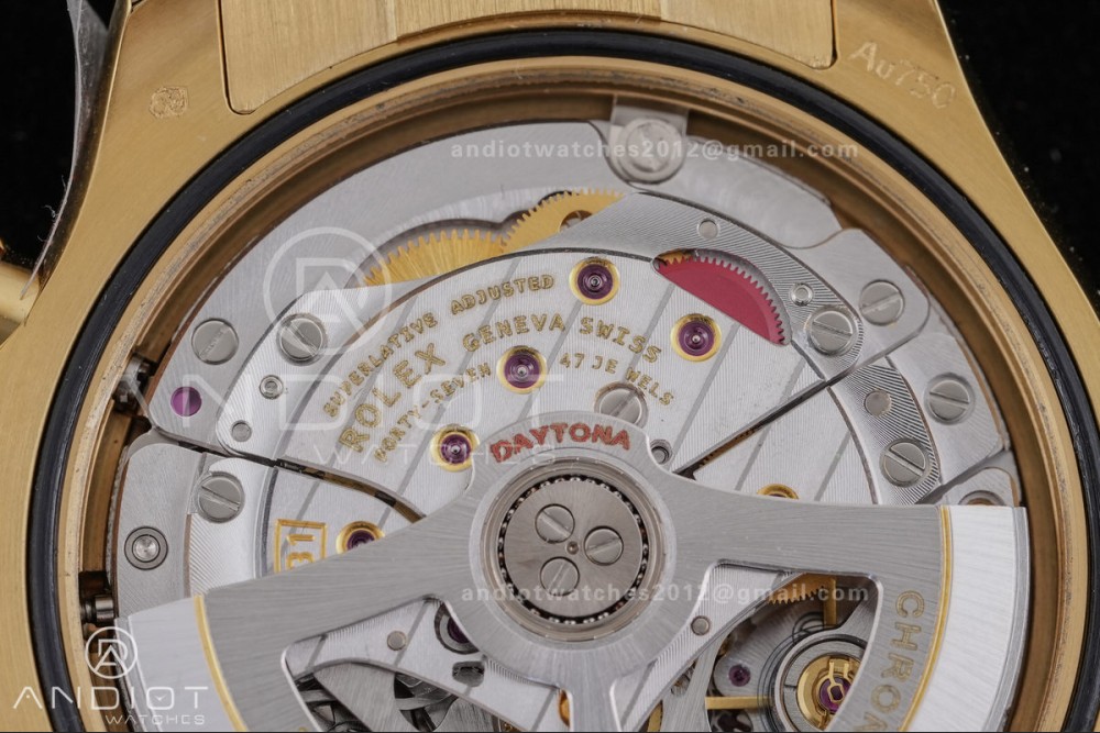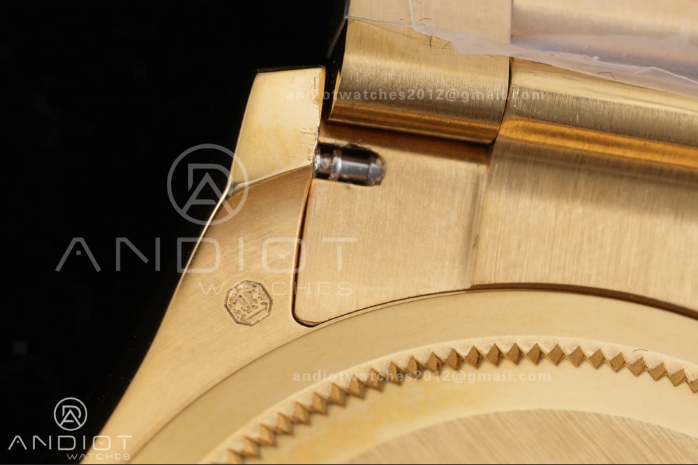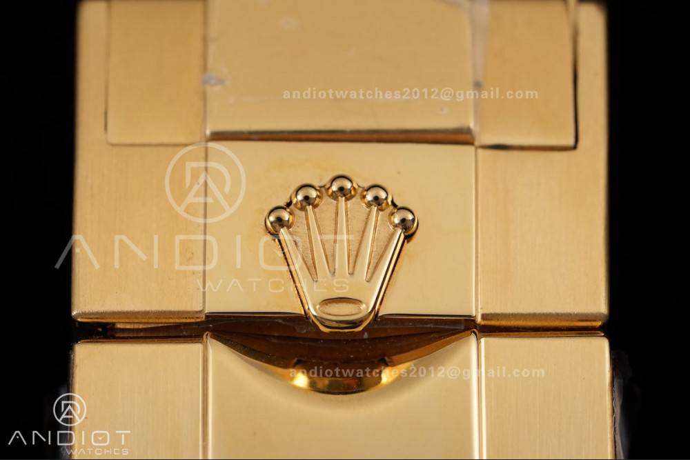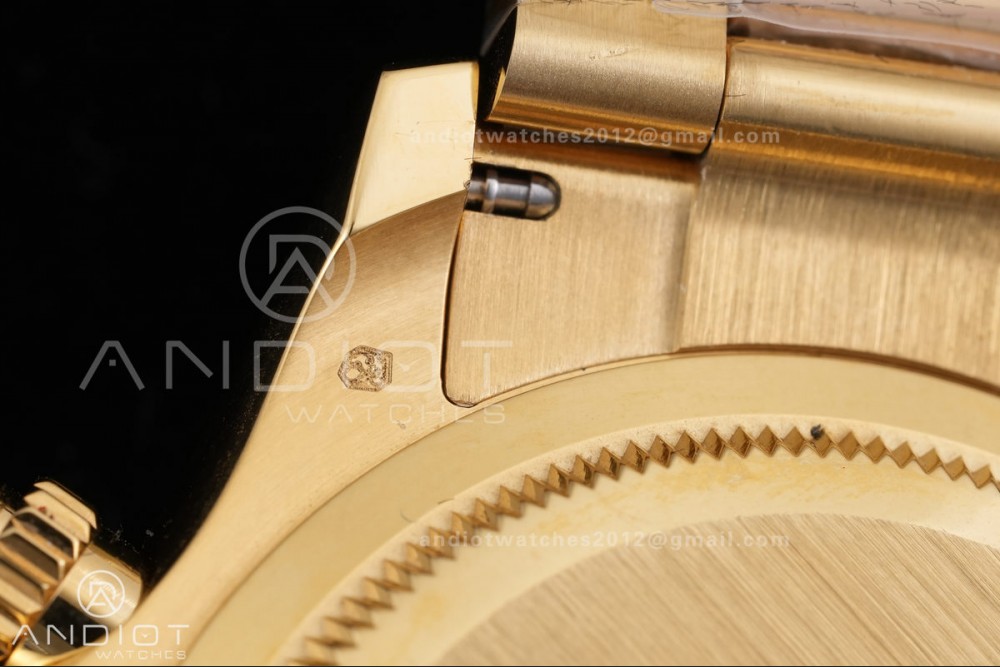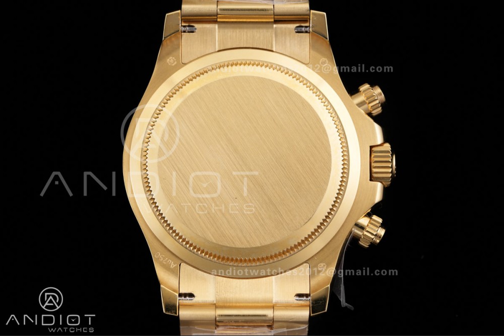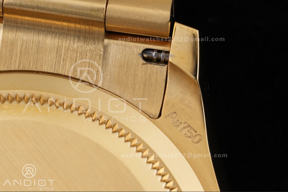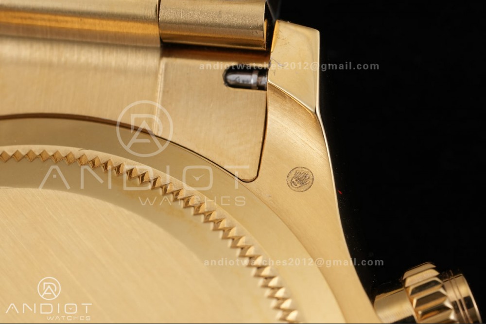- Bezel : QF 18k yellow gold plated 1:1 replicated solid 904L stainless steel bracelet, Cu-W metal to increase watch weight to match the genuine gold watch weight