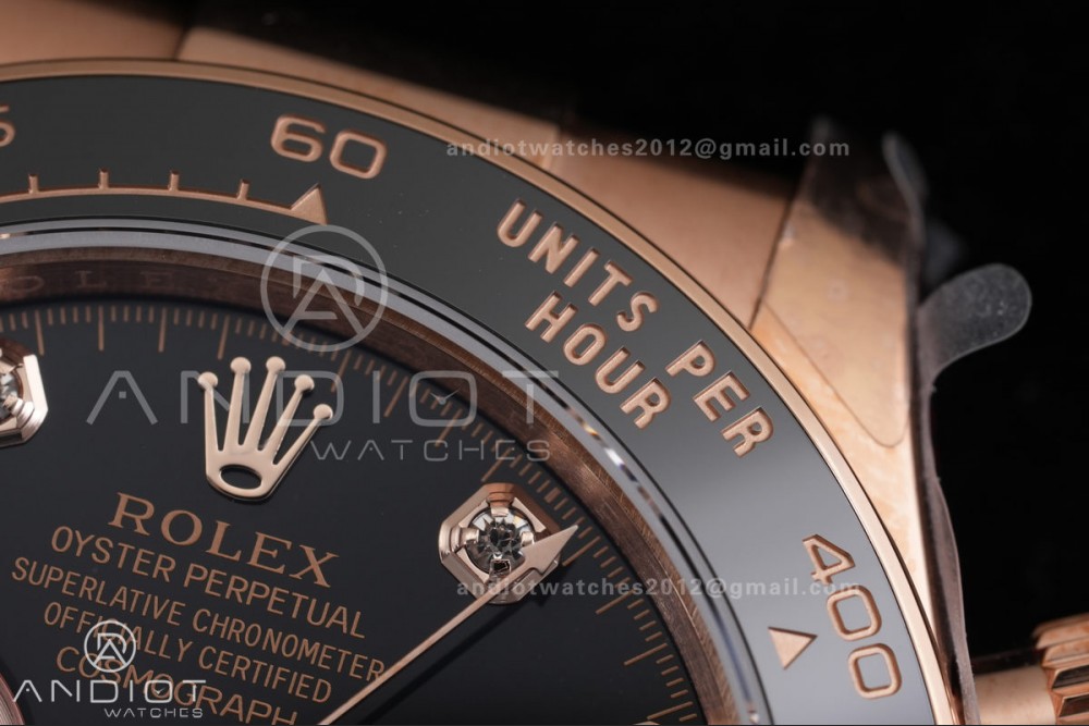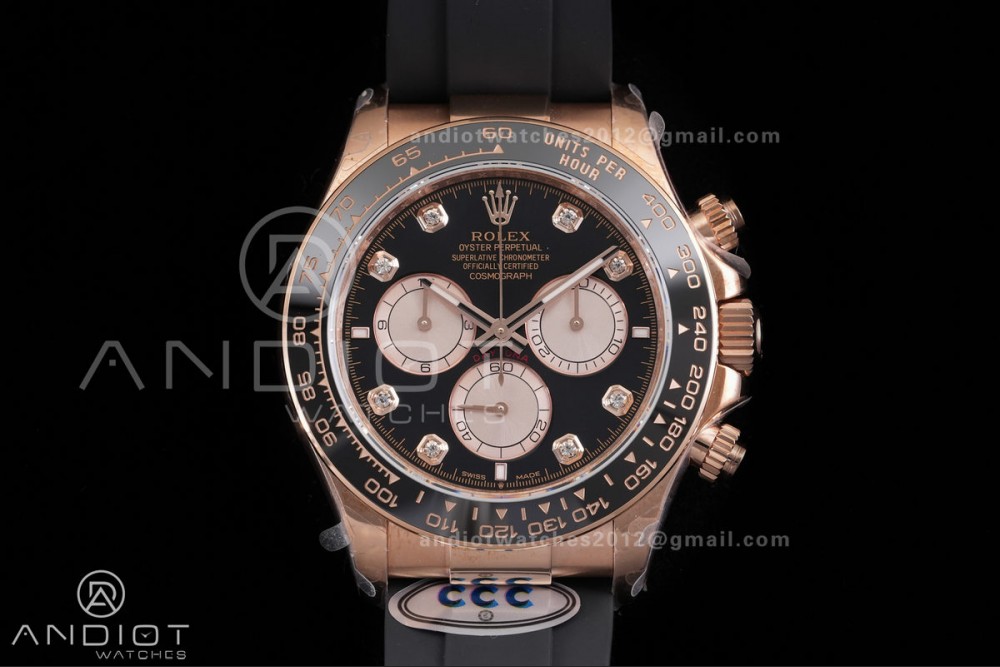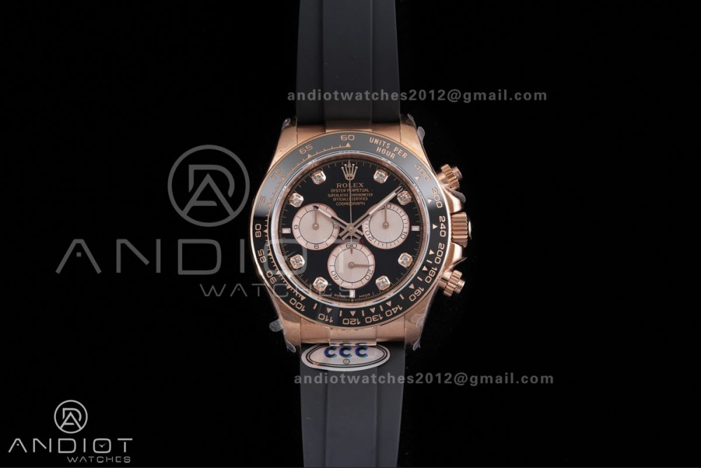 Daytona 126515 3CF 1:1 Best Edition Black/RG Diamonds Dial on Oysterflex Strap DD4131 (Gain Weight)