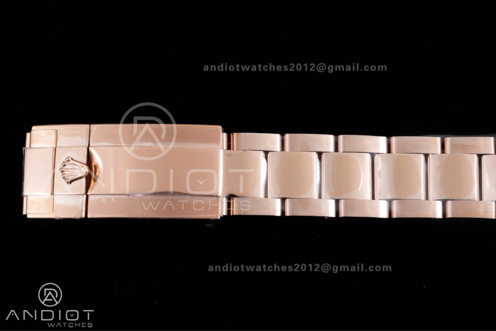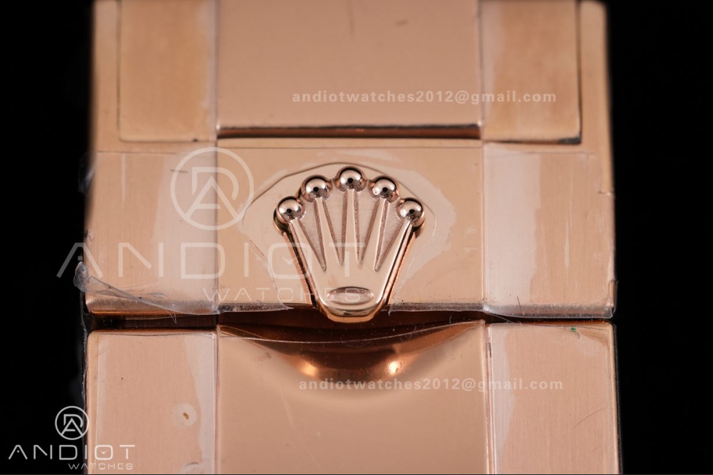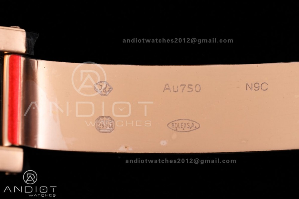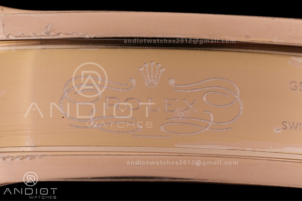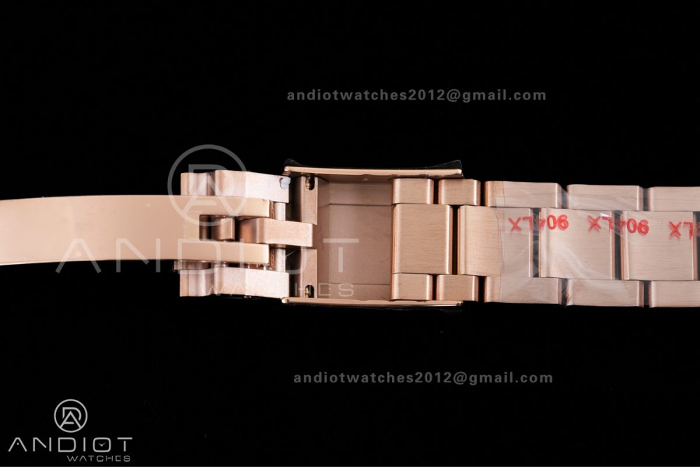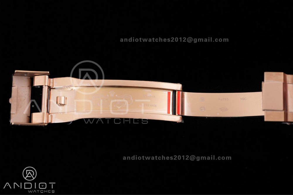 - Strap : 18k rose plated 1:1 replicated solid 904L stainless steel bracelet, Cu-W metal to increase watch weight to match the genuine gold watch weight, same weight as genuine watch