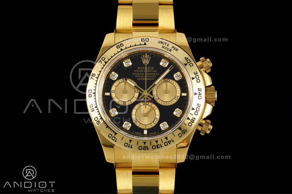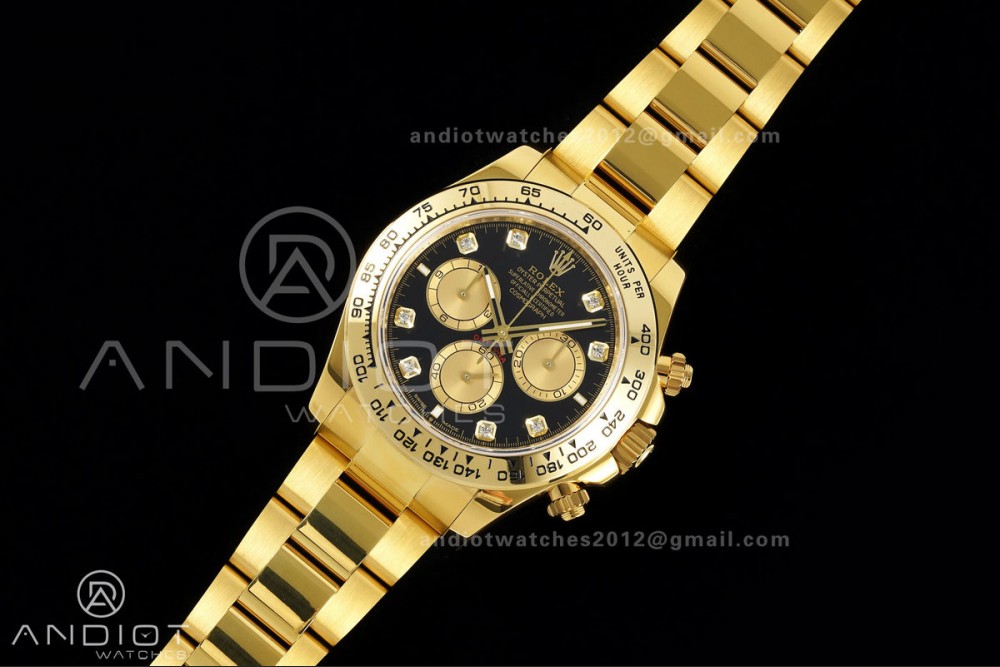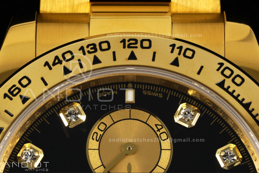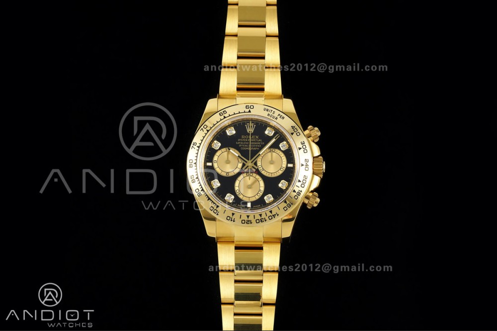 Daytona 126508 YG UFO 1:1 Best Edition Black/YG Diamonds Dial on YG Bracelet UF4131 (Free Sprung)