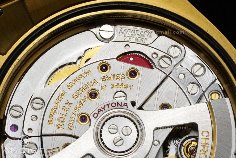 - Movement : Free Sprung Balance Wheel Superclone UFO.F4131 Slim Chronograph Automatic with Fully Functional Chronograph and decorated Rotor & Bridges/Plates like Rolex Genuine Calibre 4131 for Daytona Chronograph (Super Clone 4131 with Full Functional Chronograph