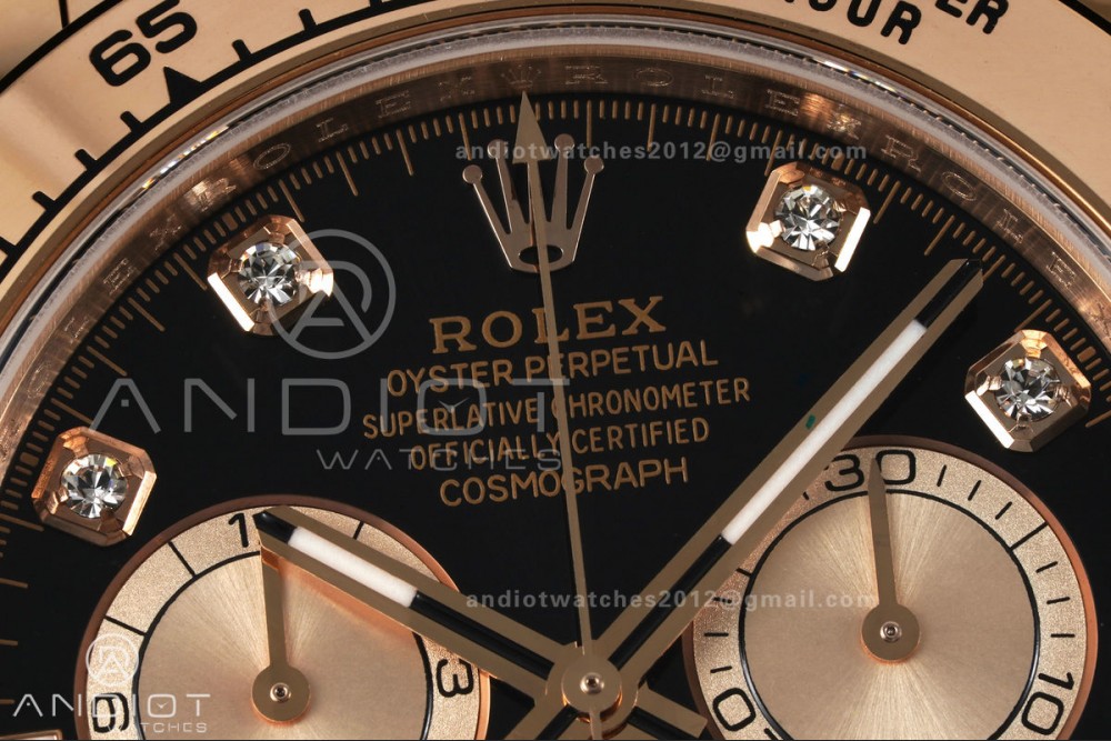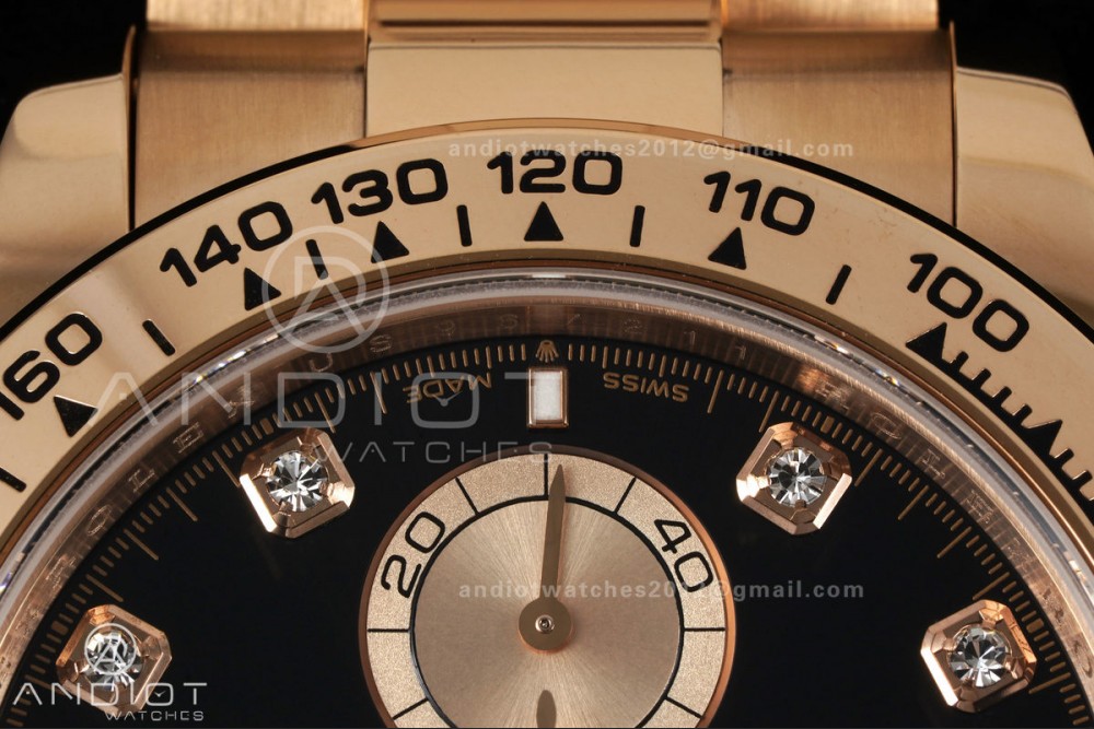 Daytona 126505 RG UFO 1:1 Best Edition Black/RG Diamonds Dial on RG Bracelet UF4131 (Free Sprung)