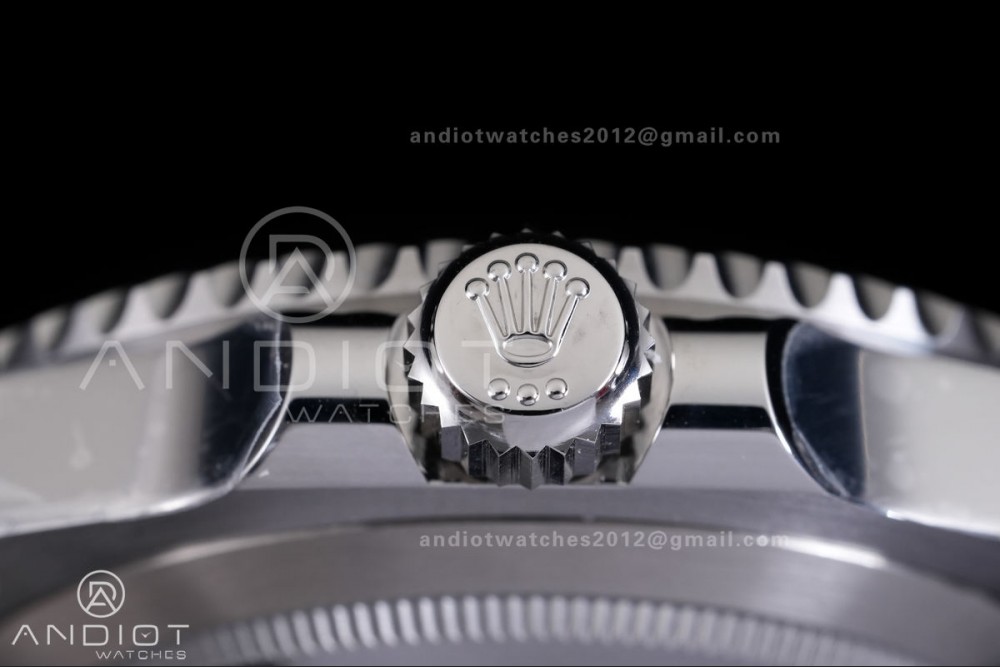- Crystal : Scratch-proof sapphire crystal with semi-invisible crown etched at 6:00 position of the crystal (same as genuine and this is the first of its kind, one revolutionary breakthrough of the Rolex replicas)