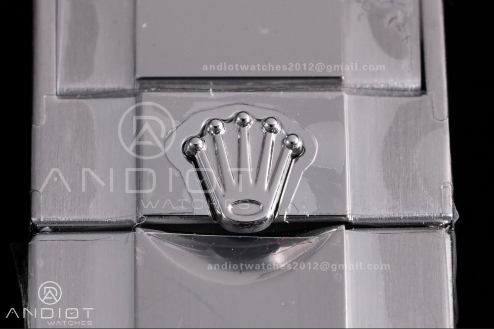 - Crystal : Scratch-proof sapphire crystal with semi-invisible crown etched at 6:00 position of the crystal (same as genuine and this is the first of its kind, one revolutionary breakthrough of the Rolex replicas)