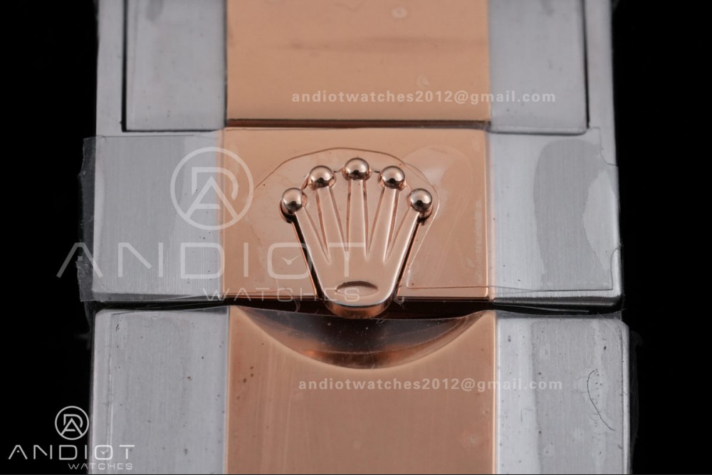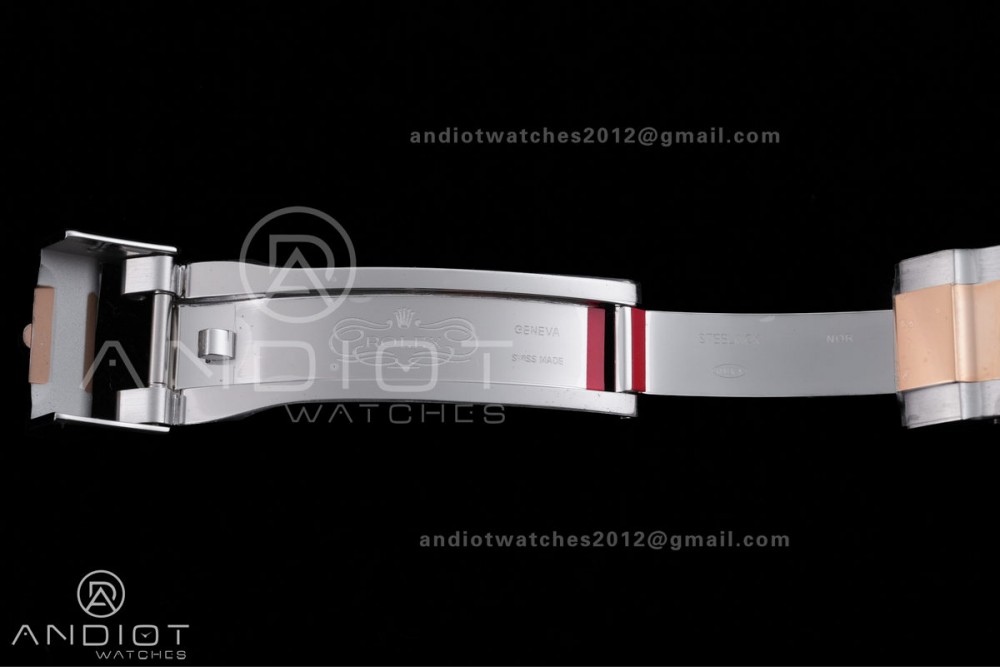 - Strap : Solid 904L stainless steel bracelet with 18k rose gold plated middle links