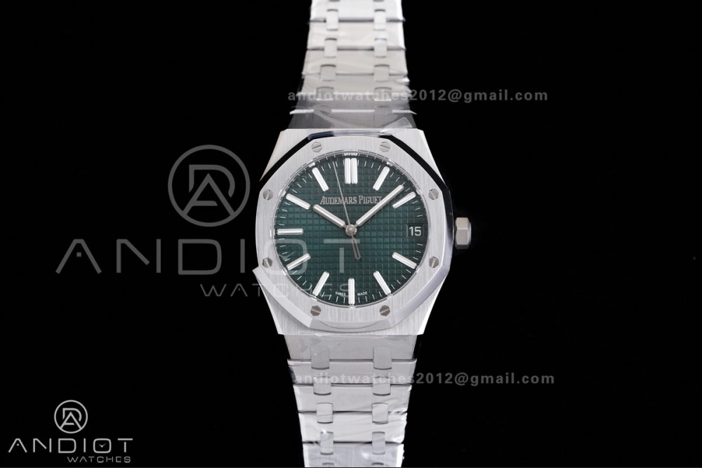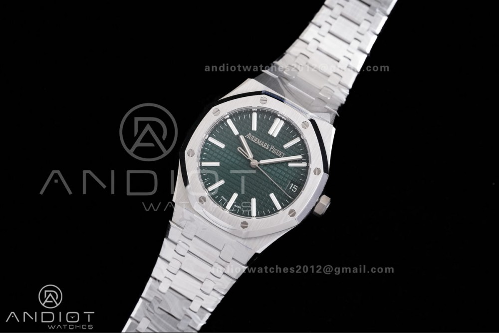 Royal Oak 15510 SS TOP 1:1 Best Edition Green Dial on SS Bracelet SA4302 Super Clone