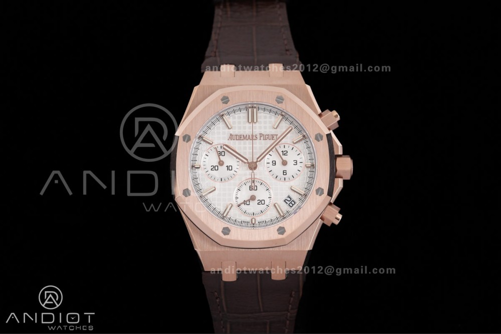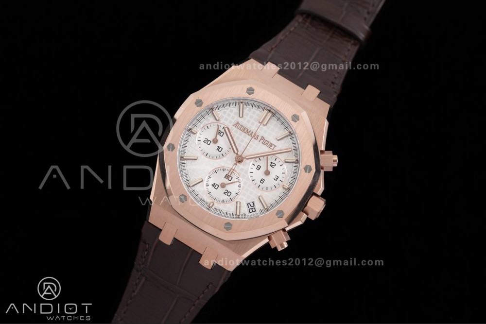 Royal Oak Chrono 26240 RG DDF 1:1 Best Edition White Dial on Brown Leather Bracelet DD4401 Super Clone (SW Dial)