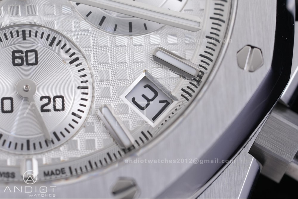 Royal Oak Chrono 26240 SS V2 APSF 1:1 Best Edition Silver Dial on SS Bracelet SA4401 Super Clone (Free Sprung)