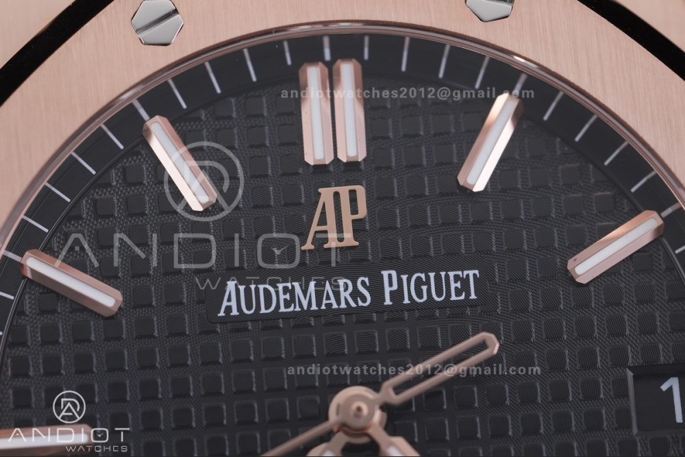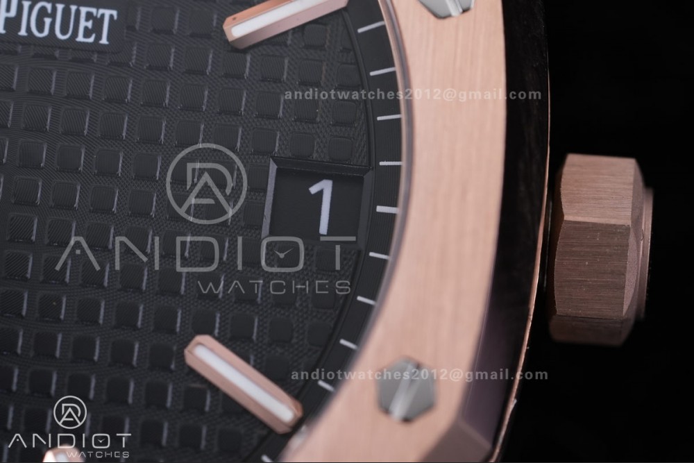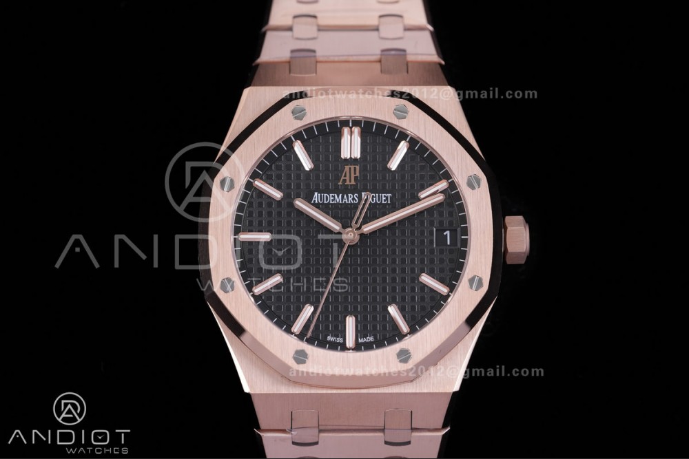 Royal Oak 41mm 15500 RG APSF V3 Free Sprung 1:1 Best Edition Black Textured Dial On RG Bracelet Super Clone SA4302