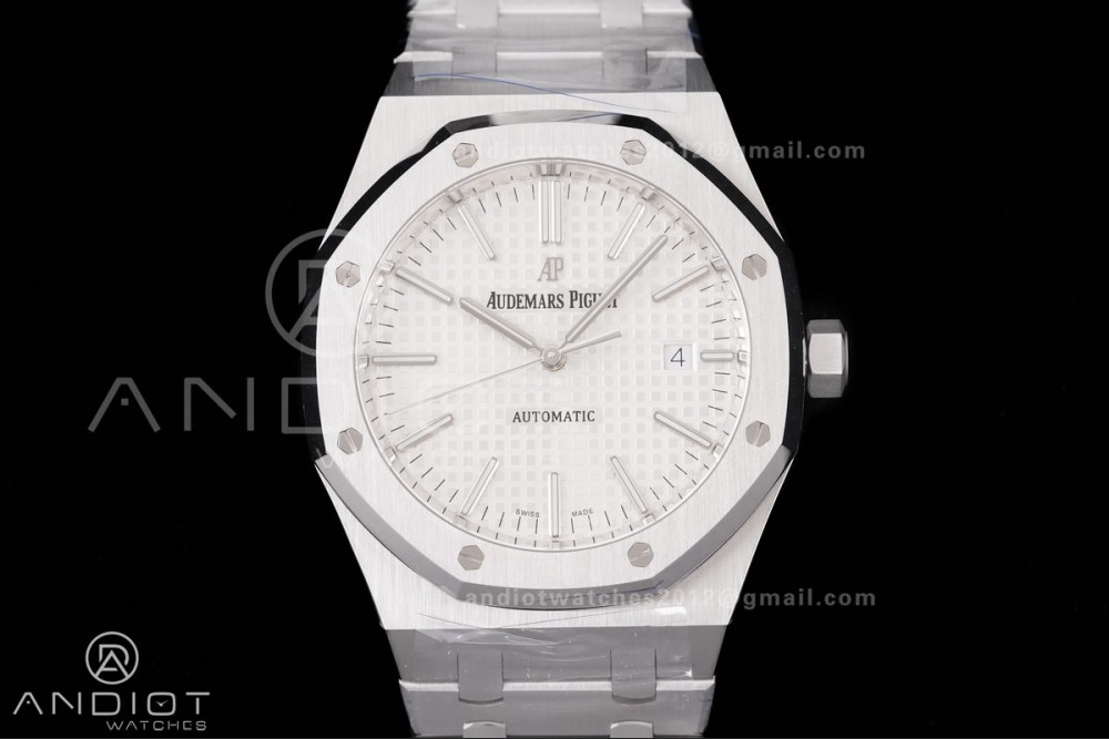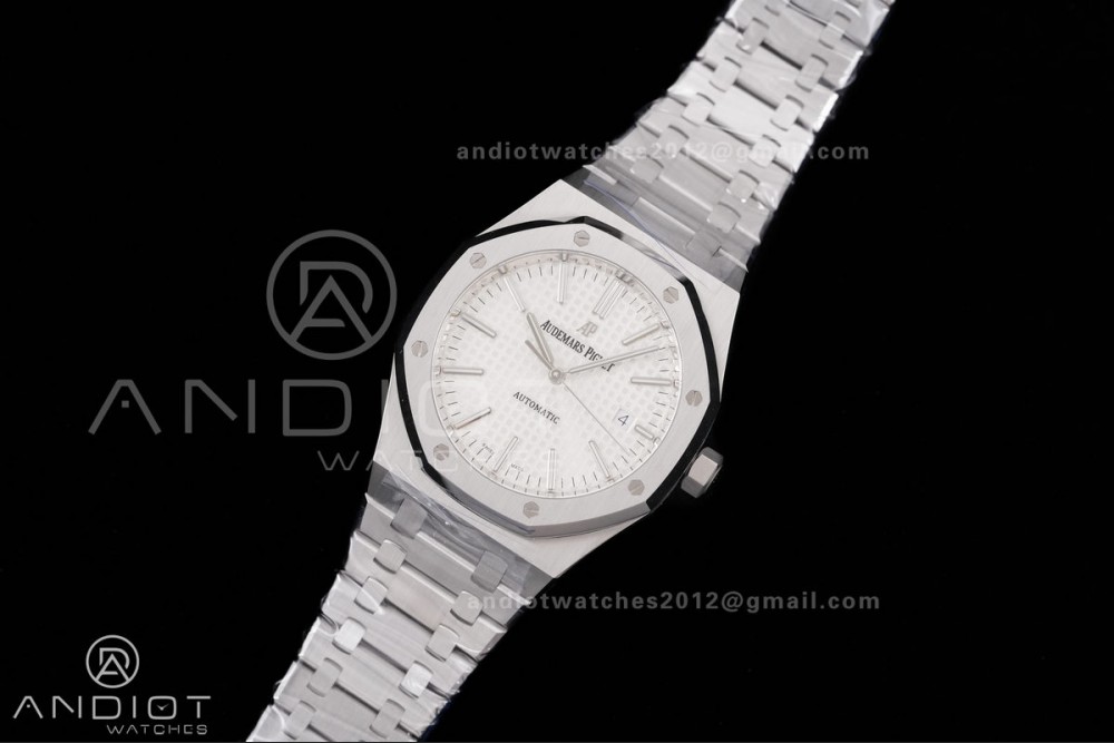 Royal Oak 41mm 15400 SS APSF 1:1 Best Edition White Textured Dial on SS Bracelet SA3120 Super Clone V3
