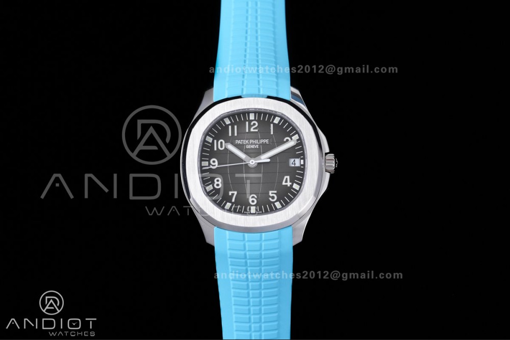 Aquanaut 5167 SS DDF 1:1 Best Edition Gray Dial on Black Baby Blue Strap DD330 Super Clone