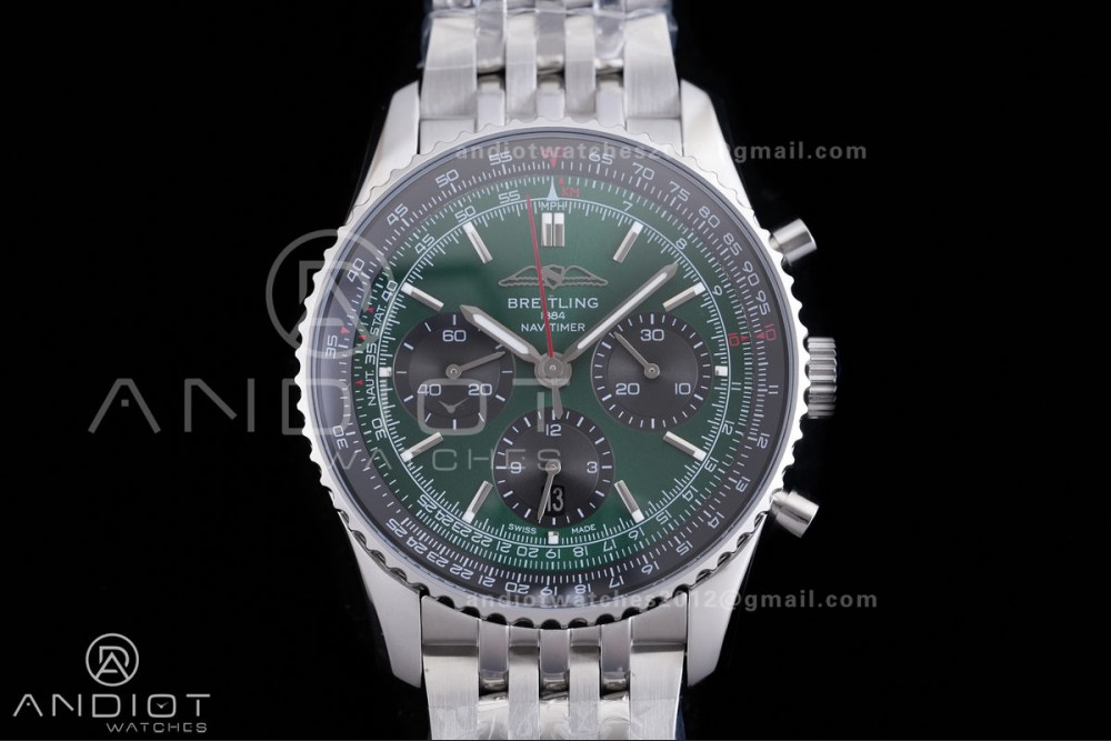 Navitimer B01 SS 43mm BLS 1:1 Best Edition Dark Green Dial Black Subdial on SS Bracelet A7750