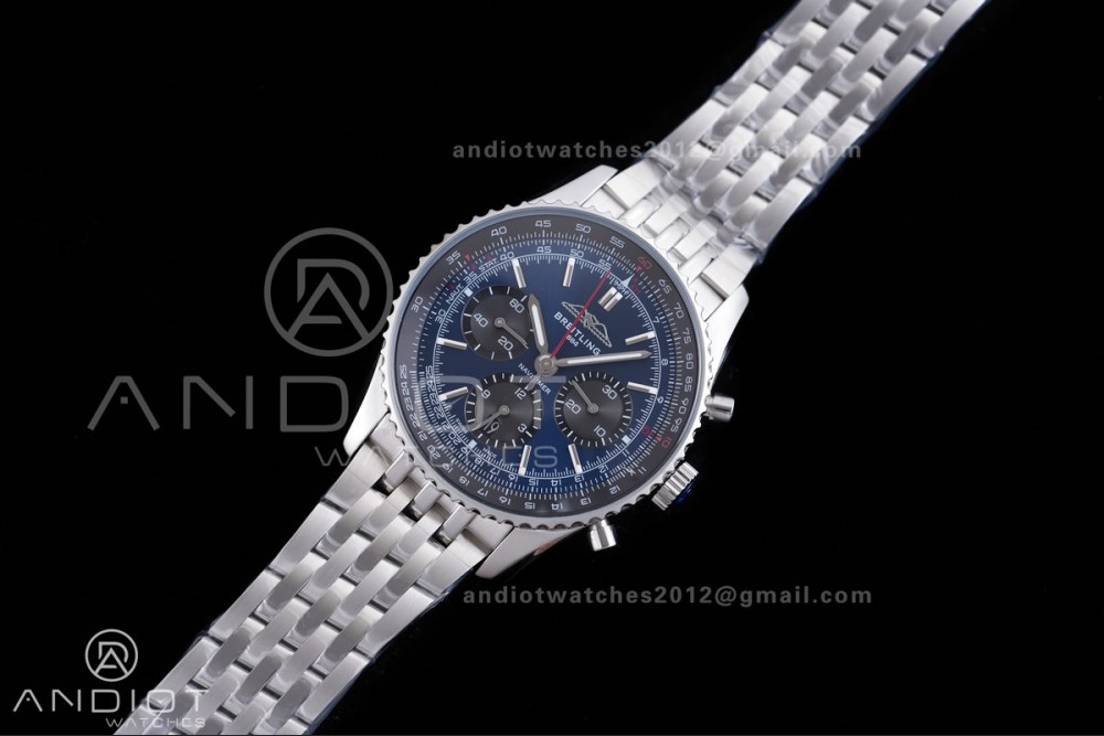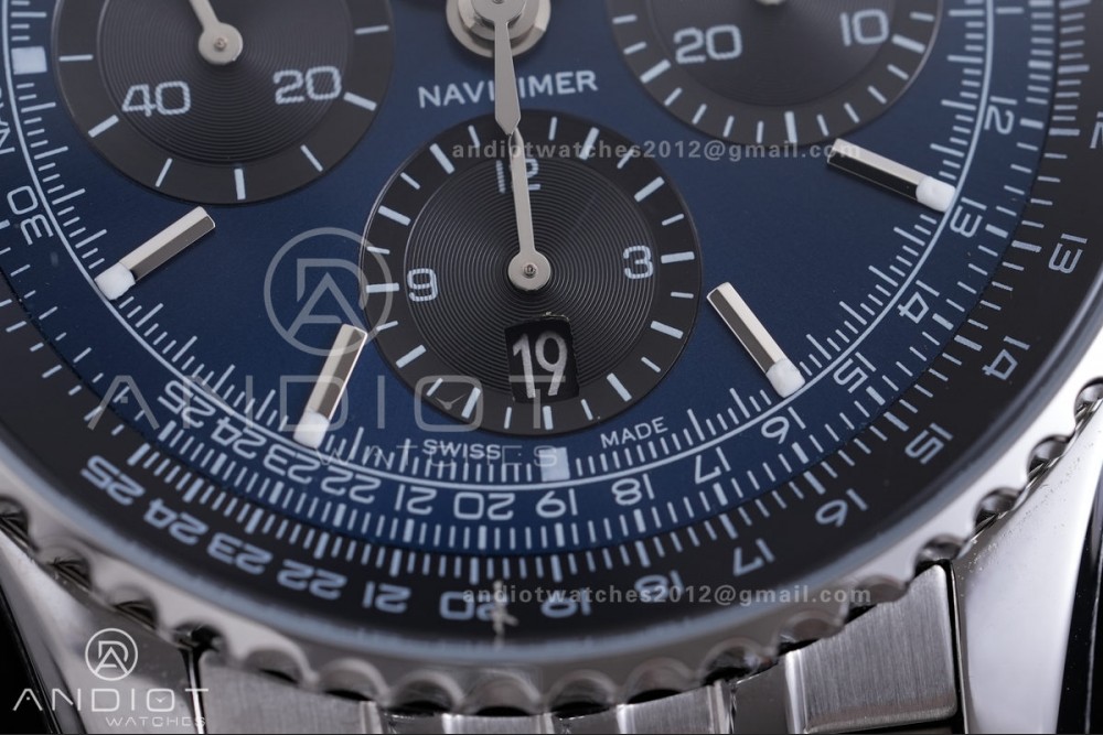 Navitimer B01 SS 43mm BLS 1:1 Best Edition Dark Blue Dial Black Subdial on SS Bracelet A7750