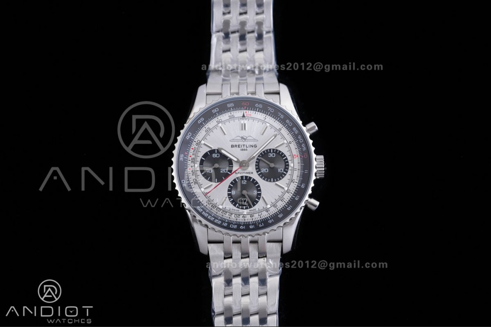 Navitimer B01 SS 43mm BLS 1:1 Best Edition Sliver Dial Black Subdial on SS Bracelet A7750