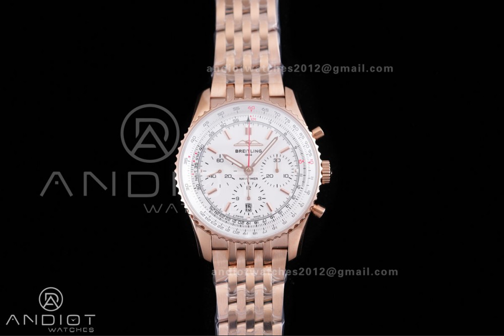 Navitimer B01 RG 43mm BLS 1:1 Best Edition White Dial on RG Bracelet A7750