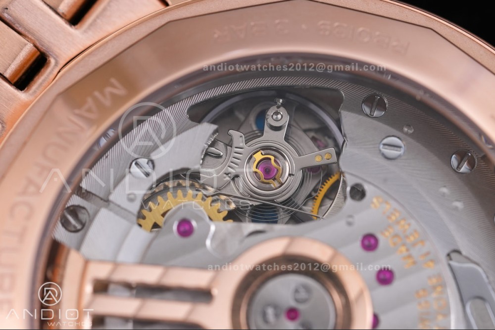- Case : 1:1 replicated 18K rose gold plated solid 316L stainless steel case