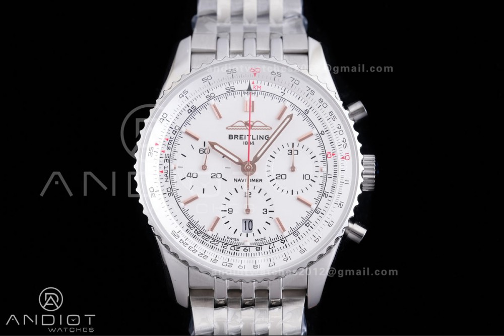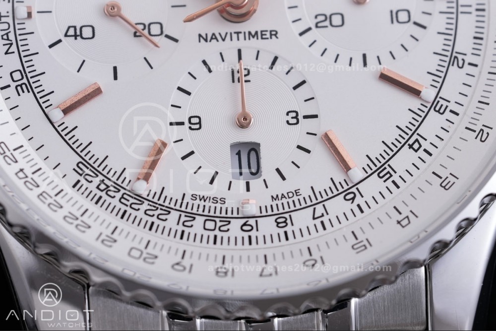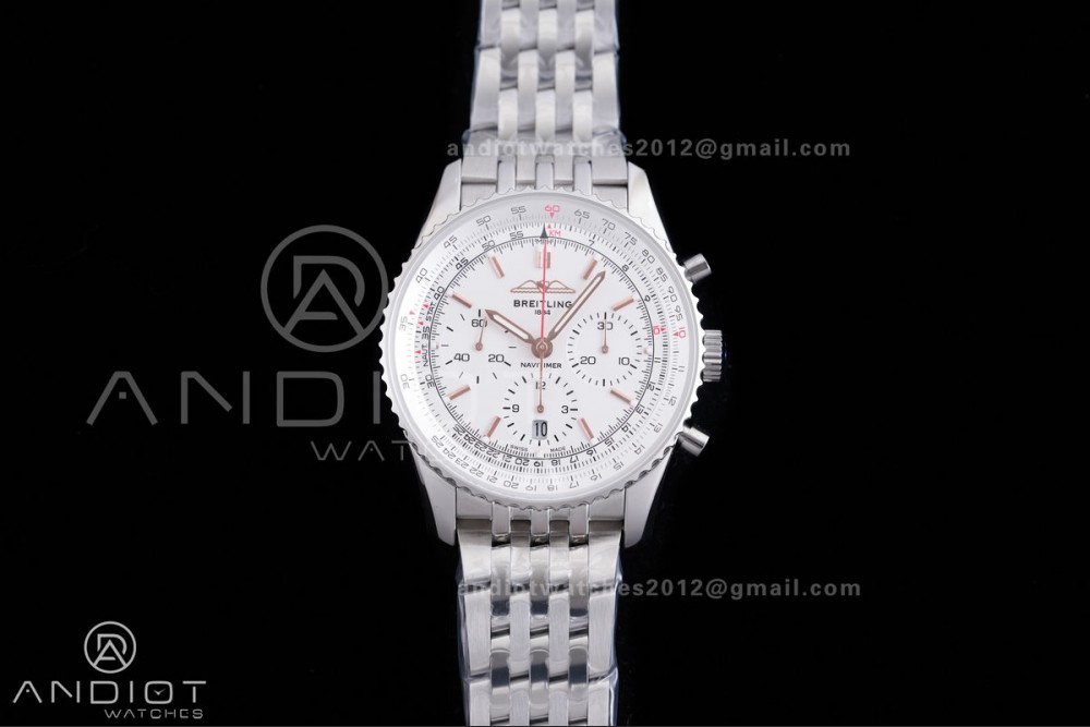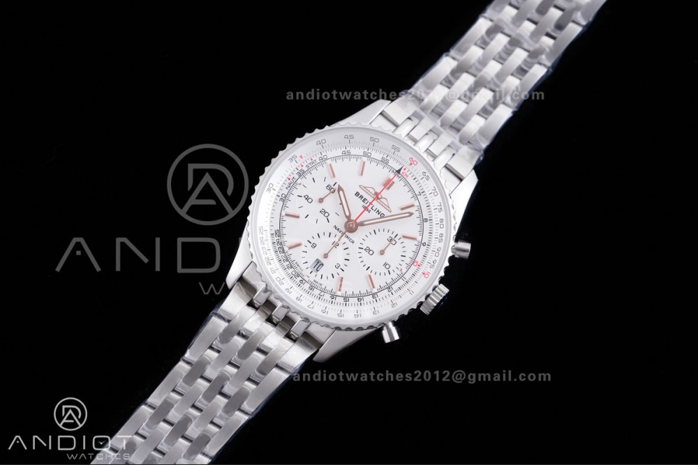 Navitimer B01 SS 43mm BLS 1:1 Best Edition White Dial on SS Bracelet A7750
