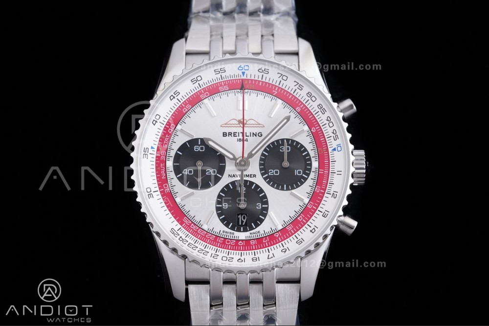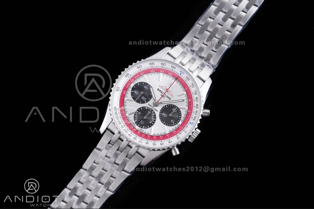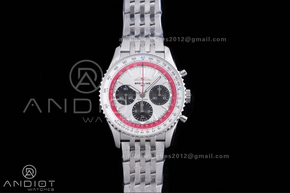 Navitimer B01 SS 43mm BLS 1:1 Best Edition White Dial Black Subdial on SS Bracelet A7750