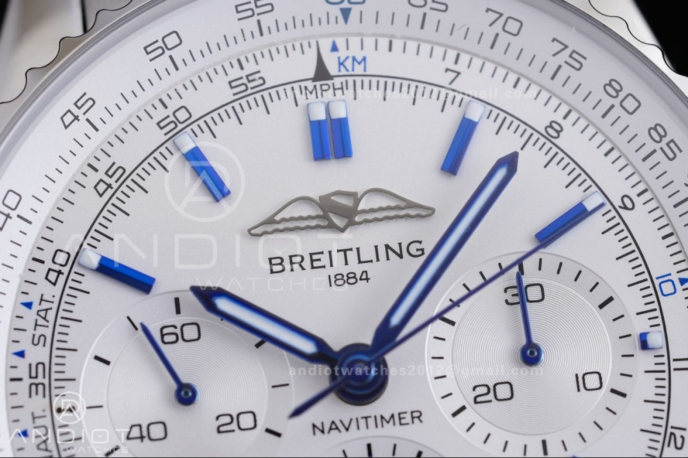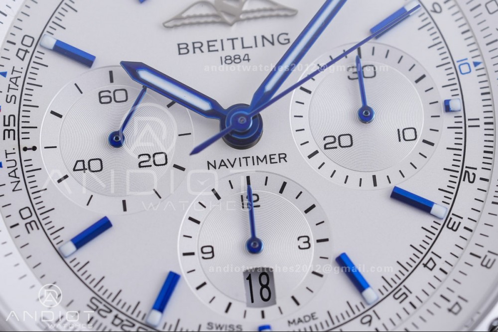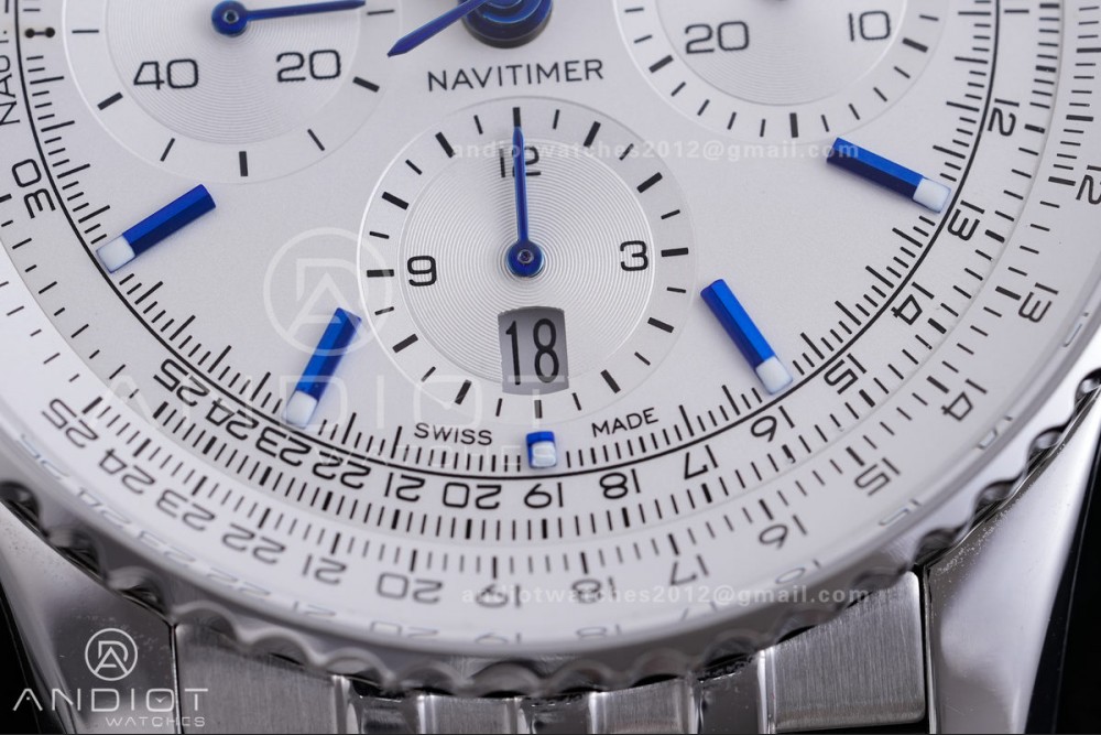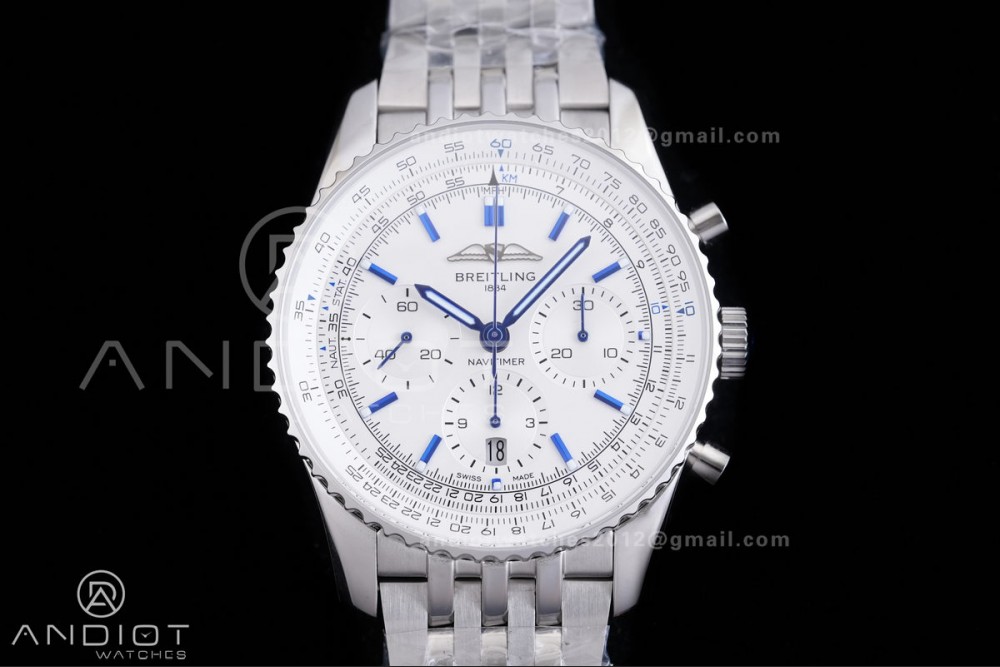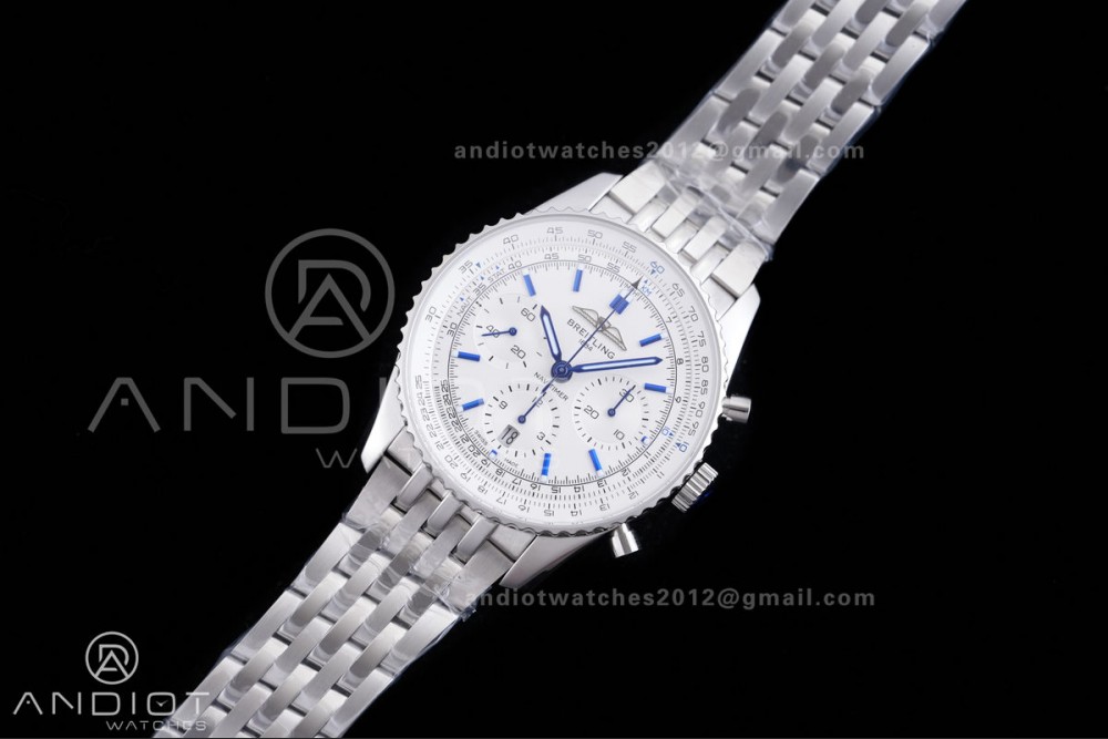 Navitimer B01 SS 43mm BLS 1:1 Best Edition White Dial Blue Marker on SS Bracelet A7750