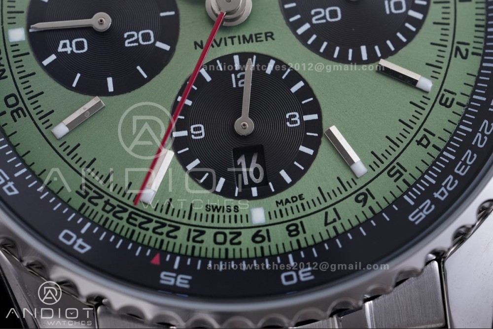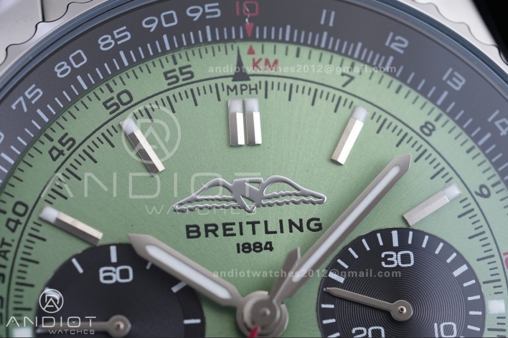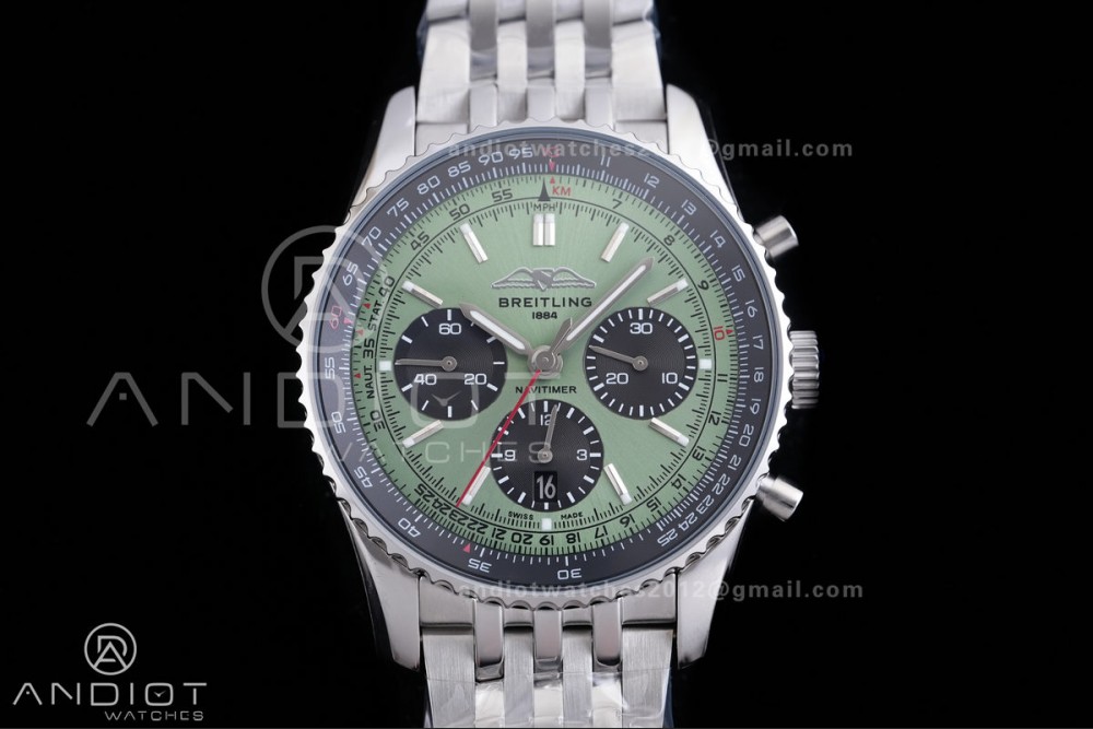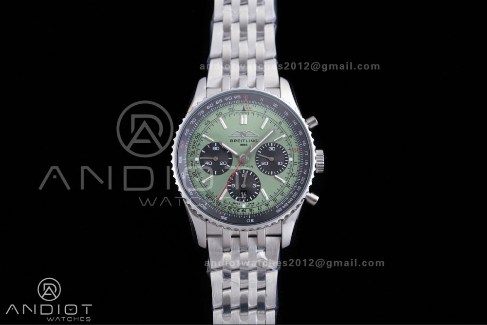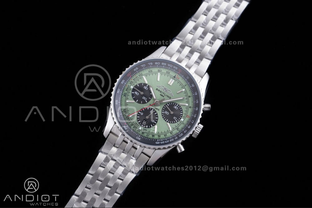 Navitimer B01 SS 43mm BLS 1:1 Best Edition Green Dial Black Subdial on SS Bracelet A7750